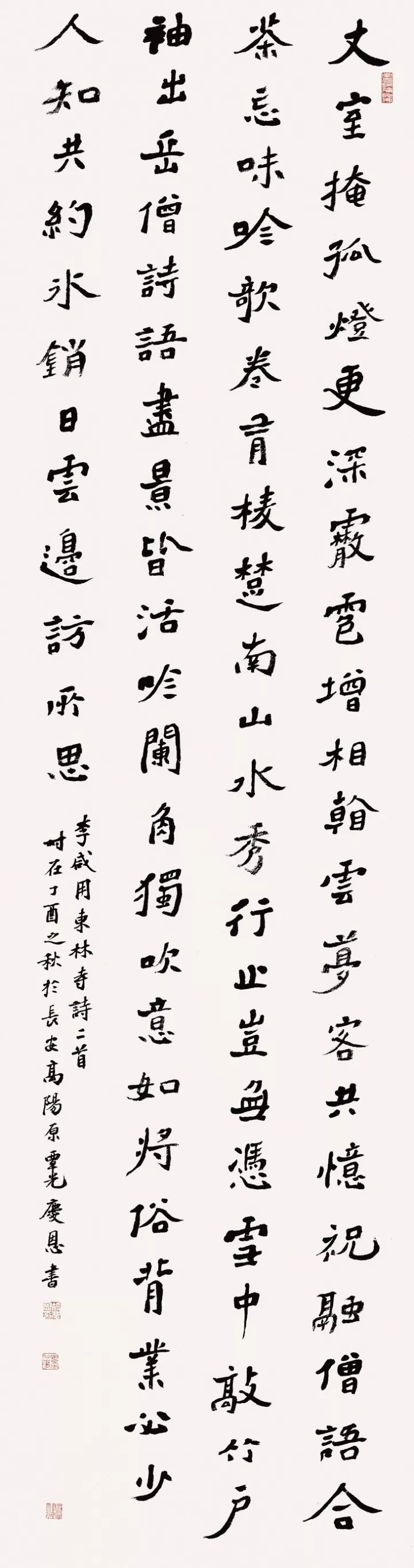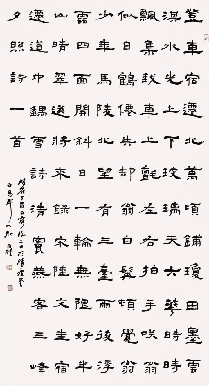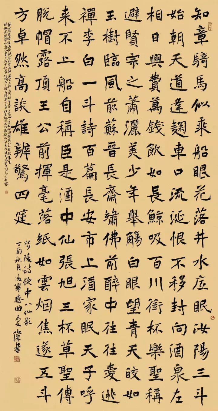 张继龙开胜徐右冰李双阳蒋乐志丁斌李白《东鲁门泛舟二首》其一173cm×48cm于铭洪韩愈《进学解》199cm×85cm万力赵孟頫《题舜举折枝桃》178cm×48cm王乃勇倪云林《竹影》180cm×97cm王国柱孙过庭《书谱》节录200cm×104cm王忠勇抱琴枕石五言联136cm×35cm×2王昱王维《桃源行》180cm×97cm王浩(笔名王灏)韦应物《淮上喜会梁川故人》180cm×64cm王家任王维《送别》176cm×94cm牛耕雨卷半淖七言联180cm×34cm×2仇高驰名画天光八言联180cm×27cm×2卞保彤郑板桥《新竹》180cm×97cm方建光古人小品二则178cm×48cm石文贞时哲《柳侯祠》180cm×95cm史焕全 汤显祖《青阳道中》138cm×70cm冯印强赵孟頫《论书》180cm×97cm冯岩清人诗四首204cm×27cm×4曲庆伟杜甫《饮中八仙歌》173cm×94cm吕金光李白《估客行》218cm×70cm朱志刚林散之诗数首198cm×70cm朱明月刘禹锡《陋室铭》180cm×97cm朱敏(敏之)梨花杨柳五言联180cm×32cm×2刘长龙自作诗二首200cm×115cm刘永清查善根《仙坛秋月》180cm×95cm刘伊明一枕半窗七言联191cm×26cm×2刘宏卫苏轼《喜雨亭记》184cm×28cm×4刘波古诗二首180cm×47cm×2刘聚森张元干 《临江仙·送宇文德和被召赴行在所》205cm×84cm刘德先何良俊论书数则181cm×100cm刘颜涛张志和《渔歌子》114cm×50cm米闹刘长卿《游四窗》138cm×69cm宇文家林《晋书·列传第二十四》摘录34cm×270cm许金学郑板桥题画诗二首180cm×97cm孙万民董其昌《画旨》180cm×48cm孙冲自作诗一首207cn×94cm孙学辉韩愈《师说》180cm×115cm孙宪华德意履禄四言联180cm×49cm×2李双阳方千《中路寄喻凫先辈》180cm×48cm李利唐诗两首177cm×96cm李明《文心雕龙·征圣》句180cm×97cm李贵阳清人书论五则200cm×69cm李啸东王安石《孤桐》180cm×64cm李锐杜甫《秋兴》八首选六30cm×40cm×5杨江帆苏轼《浣溪沙》206cm×62cm杨雯启功先生题跋选抄213cm×120cm吴庆东李白《夜泊牛渚怀古》180cm×97cm何来胜孔子泰山十言联180cm×24cm×2何宗国旧作二首200cm×116cm辛宏自作诗词180cm×97cm宋旭安苏轼《黄州快哉亭记》174cm×67cm张一冰吴藻《浣溪沙》180cm×36cm张文平曲水乱花七言联180cm×32cm×2张延龙自作诗文《雪赋》187cm×42cm张红杰王维《终南别业》177cm×91cm张青山皎然《同明府章送沈秀才还石门山读书》196cm×38cm×3张英俊褚朝阳《登少室山寺》180cm×98cm张胜伟王昌龄《岳阳别李十七越宾》180cm×93cm陈天民自作诗文一首180cm×47cm×2陈花容康有为诗二首180cm×97cm陈胜凯尚颜《送朴山人归新罗》 205cm×70cm陈晓宇司空图 《二十四诗品》选抄197cm×65cm陈靖虔心涤虑九言联180cm×28cm×2武威杜甫诗二首136cm×60cm×2林玉梅刘勰《文心雕龙·辨骚篇》140cm×34cm季平白朴《越调·天净沙》178cm×117cm金泽珊皎然《秋夜宿破山寺》180cm×97cm周毛新周邦彦《苏幕遮·燎沉香》142cm×35cm周军古人书论选抄196cm×50cm周斌朱熹《咏武夷茶》210cm×50cm郑庆伟节录东坡文句193cm×105cm胡永庆古贤小品文五则186cm×16cm×3胡庆恩李咸用《东林寺诗》180cm×48cm柯学刃刘禹锡《终南秋雪》173cm×94cm查理达黄庶《饮张承制园亭》138cm×49cm娄东昇苏轼《减字木兰花》200cm×97cm祝洪新洪应明《菜根谭》一则193cm×46cm贺炜炜聂豹《凌云阁》180cm×97cm耿自礼自作诗180cm×97cm贾长城石涛题画诗180cm×24cm×4顾翔思羽《沁园春·赞华夏》180cm×97cm钱守宽吴德旋《论书随笔》188cm×70cm倪和军郑板桥《竹石》180cm×97cm徐右冰李白《鸣雁行》180cm×97cm徐强自作诗137cm×70cm殷旭明毛泽东《清平乐·六盘山》180cm×97cm卿三彬大漠长河五言联175cm×46cm×2凌海涛八指头陀《题天台十甲子老僧坐禅处》200cm×100cm栾金广杜甫《携妓纳凉 晚际遇雨》180cm×97cm曹元伟欧阳修词十三首23cm×52cm×8曹向春王维《送綦毋潜落第还乡》180cm×97cm黄庭坚诗二首34cm×174cm彭双龙跋颜真卿墨迹后180cm×61cm×2 蒋乐志诗堪官列七言联200cm×31cm×2蒋金明(金铭)苏轼《题西林壁》246cm×93cm傅亚成毛泽东《水调歌头·游泳》202cm×69cm曾锦溪许浑《游钱塘青山李隐居西斋》180cm×100cm谢全胜李格非《书洛阳名园记后》180cm×96cm谢兴华陶渊明《归去来兮辞》33cm×148cm樊子阳朱彝尊《笔筒铭》180cm×97cm潘文志《世说新语》二则178cm×88cm薛党军辛稼轩《玉楼春》词203cm×83cm魏兵然花雨柳荫七言联197cm×35cm×2张守跃白居易《山泉煎茶有怀》180cm×97cm张生春沈仲寅《邑志序》177cm×65cm范青何绍基《录黄庭坚题摹燕郭尚父图轴》180cm×100cm赵立志古诗数首41cm×24cm×10提俊丰《东坡志林》数则 29cm×107cm×4