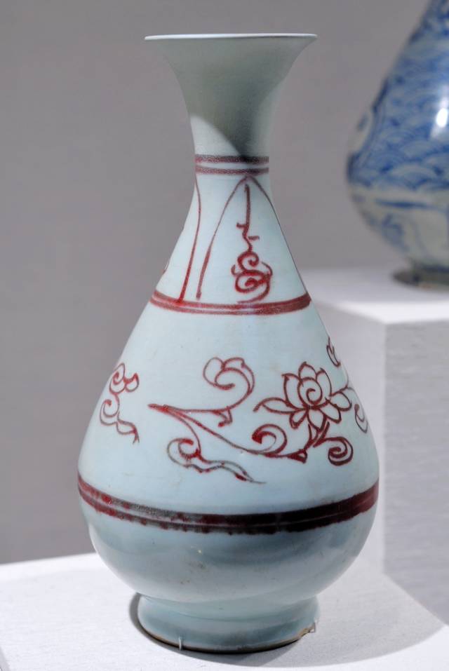 而具有鱼藻纹、牡丹纹等中国元代绘画风格的元青花大盘,可能主要供元代皇室和蒙古贵族使用,元代汉族显贵较少使用大瓷盘,他们更青睐青花小盘、执壶、玉壶春瓶、梅瓶、罐等器皿,与汉人饮食方法、居住方式、家庭陈设及审美习惯有一定的关系。