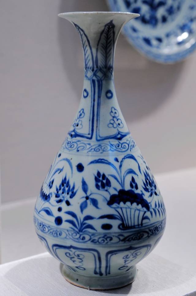 元青花大盘主要收藏于伊斯兰国家,这可能与十三、十四世纪中亚、西亚伊斯兰世界上流社会的日用高档瓷器大量需求与饮食习惯有关,大瓷盘可陈放大量食物,方便众人围坐食用。这表明元青花大瓷盘可能更多的是外销。一些元青花大瓷盘绘有伊斯兰艺术风格纹样,应是来样加工的定烧外销瓷。