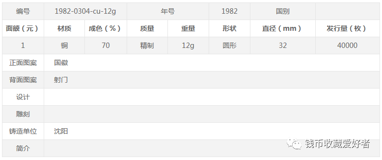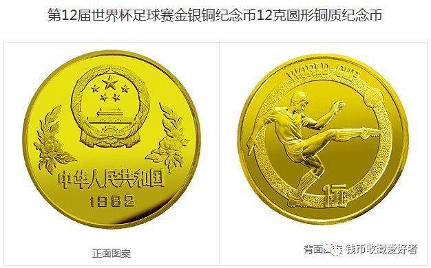 1982年发行1枚12克重的十二届世界杯的铜质纪念币,发行量40000枚,面值1元,与金银纪念币配套。由上海造币厂和沈阳造币厂联合铸造,由于两厂在原模设计与雕刻上出现了一些差异,导致出现上海版和沈阳版两种版别。![]()