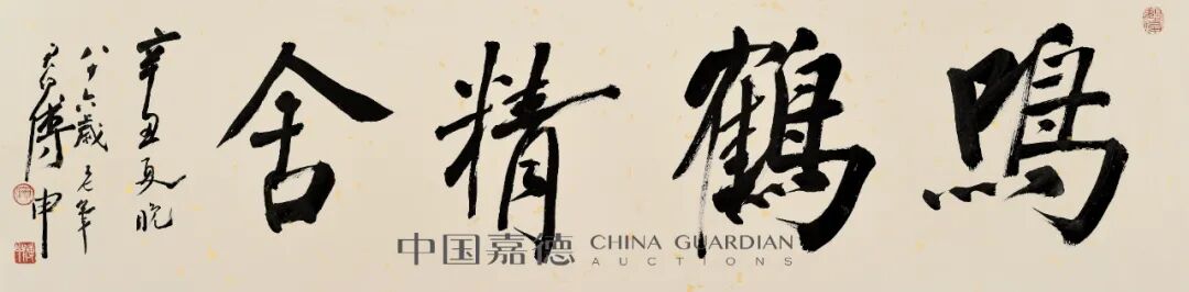 有一次我问傅申先生我算不算您的学生,他笑着回答:我们是亦师亦友。我与先生交往大十几年,看他当场写字的场合有多次,有人请他写斋号他总是来者不拒,我也帮过几位朋友找他题斋号,他都欣然提笔,早期篆书斋号也写的好,他为我们近墨堂斋号就是篆书。这些年他不怎麽写篆书了,常以行楷写斋号,晚年的字与他壮年比时时「失控」,但正是这种「失控」使他的书法自由轻松有些随意,这便是孙过庭所言「通会之际,人书俱老」之境界。他最近的一次送我一个「大字歌」长卷,不无得意地写上「林霄喜欢我晚年字」。我告诉他,真的是越晚年写的越高妙。——香港近墨堂书法研究基金会主席、著名古书画收藏家林霄