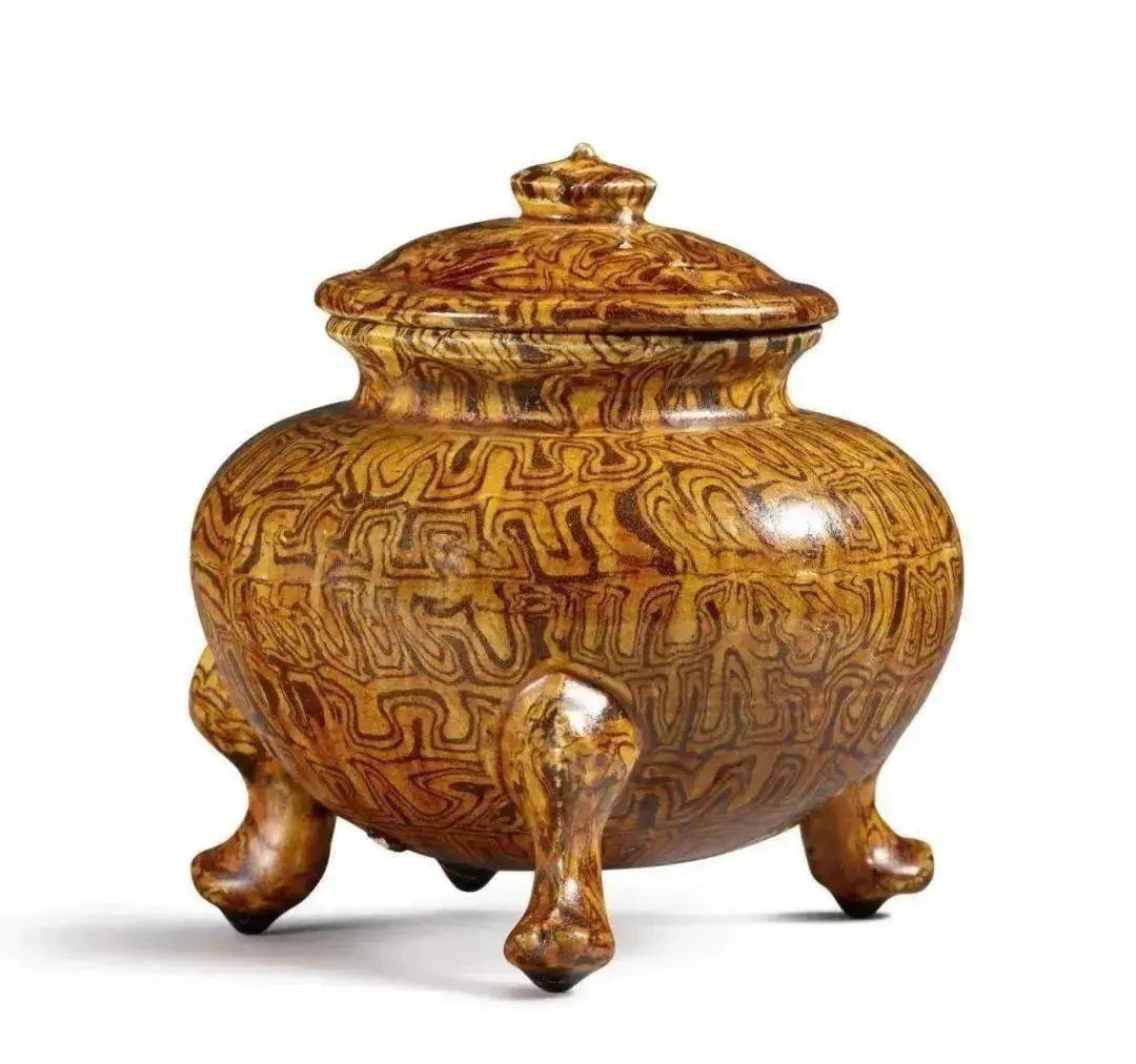 元 磁州窑绞胎鼎式炉(正面) 美国弗利尔美术馆藏