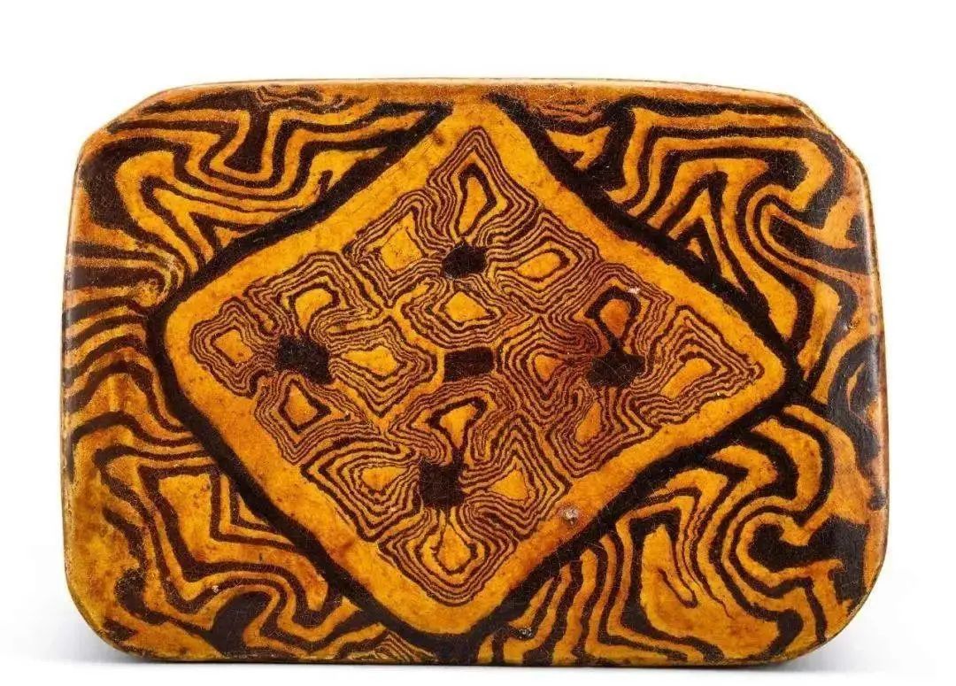 唐 巩县窑黄釉绞胎瓷枕(枕面) 美国哈佛艺术博物馆藏