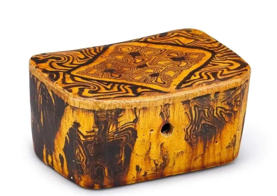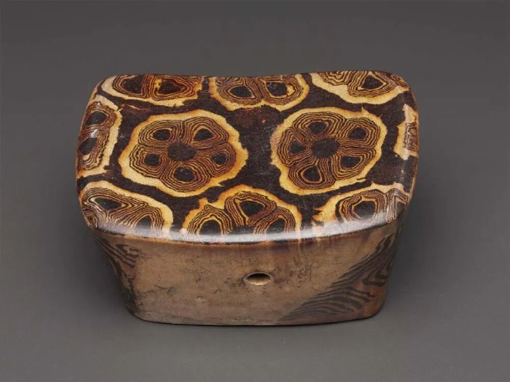 唐 巩县窑黄釉绞胎瓷枕(左侧) 美国哈佛艺术博物馆藏