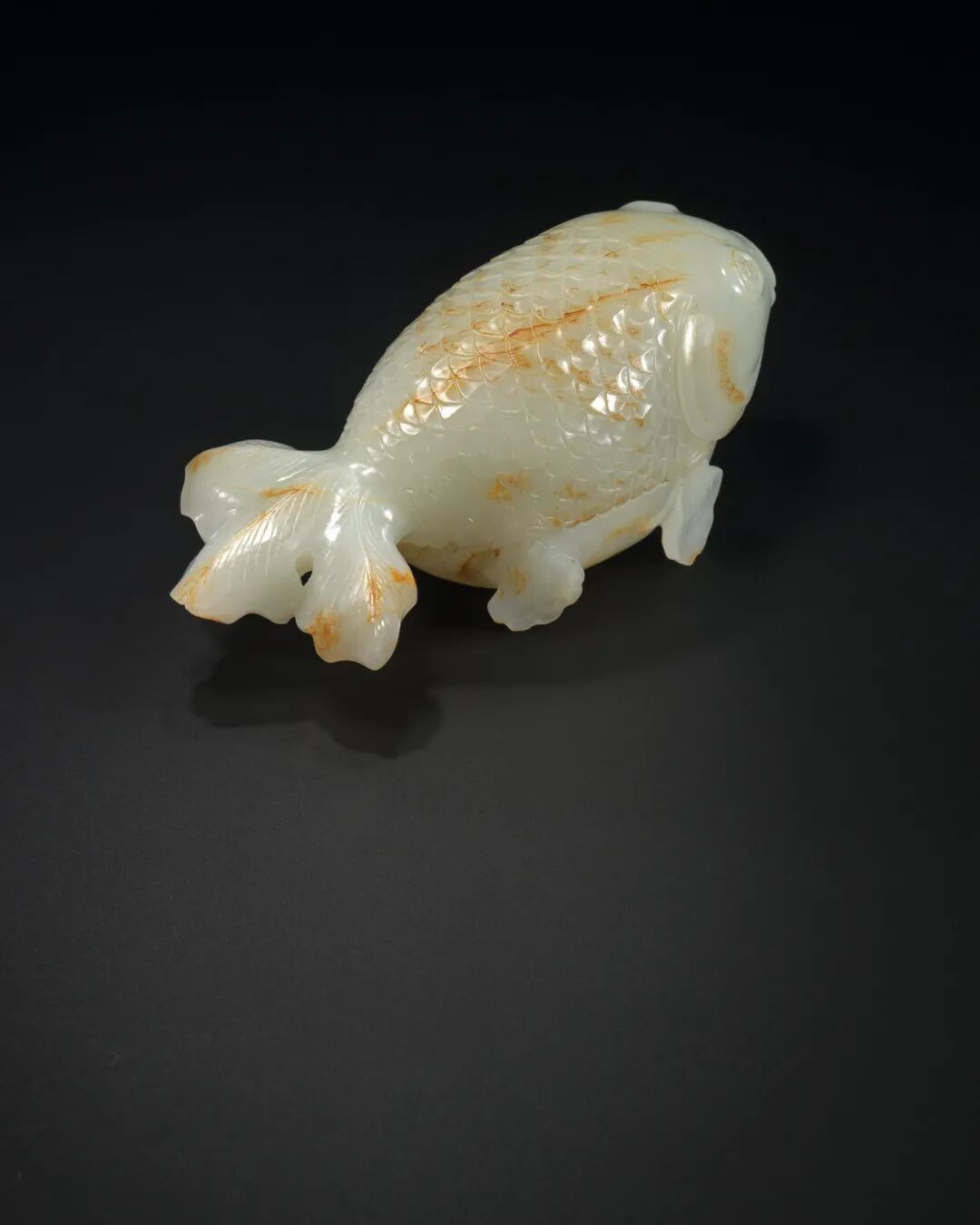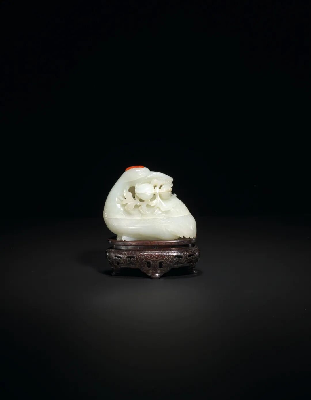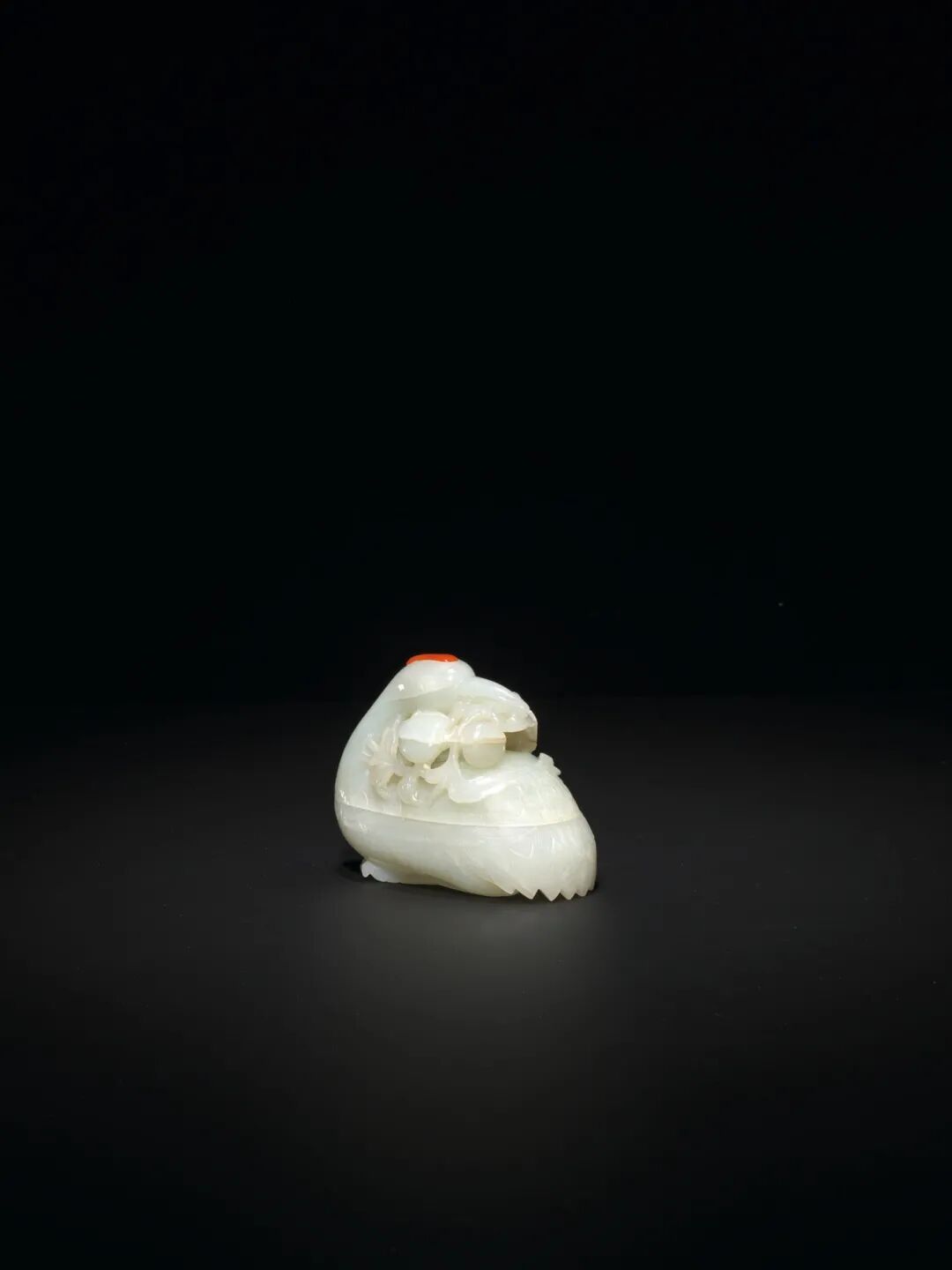 清十八-十九世纪 白玉带皮鱼型盖盒 成交价1875000港元