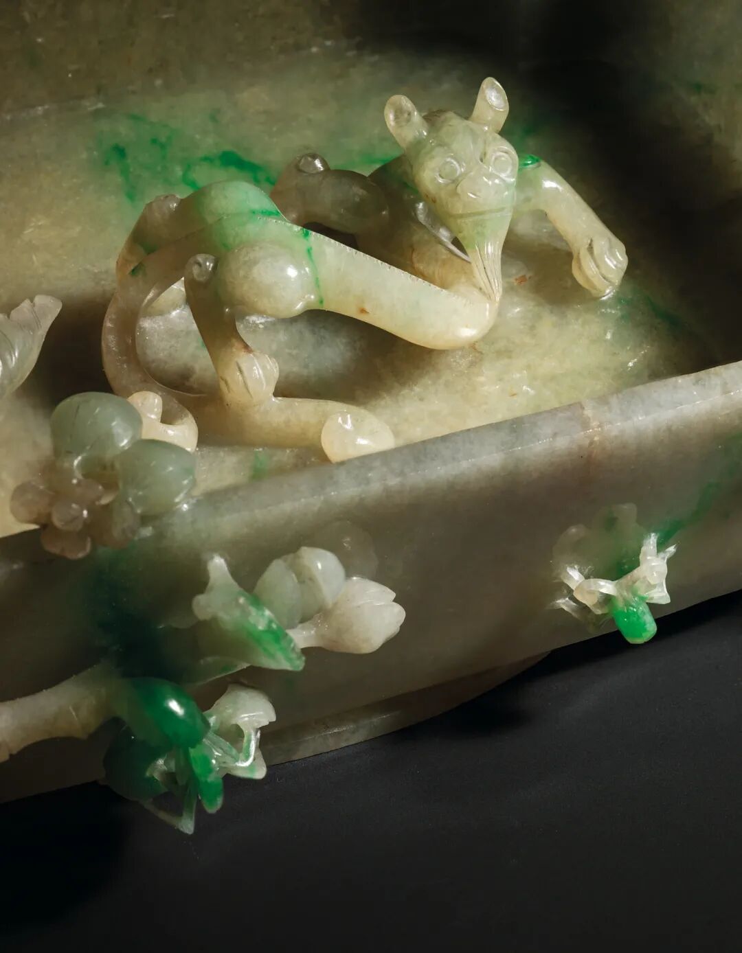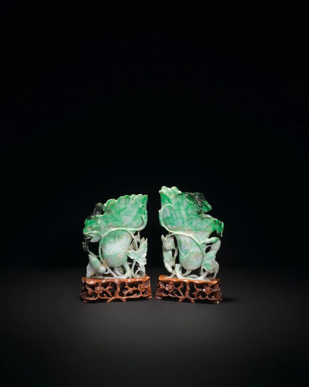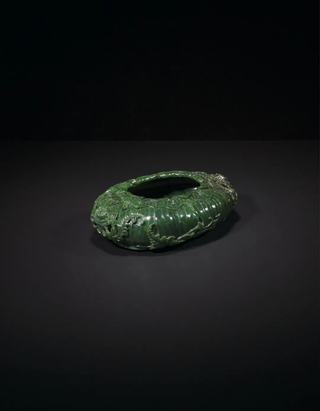 清十九世纪 翠玉镂雕螭龙梅花洗纹一对 成交价937500港元