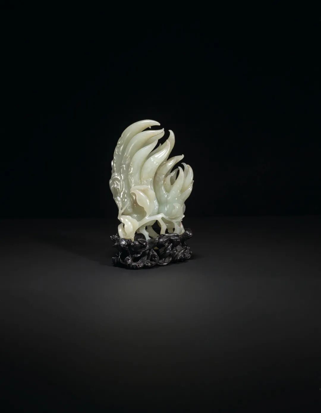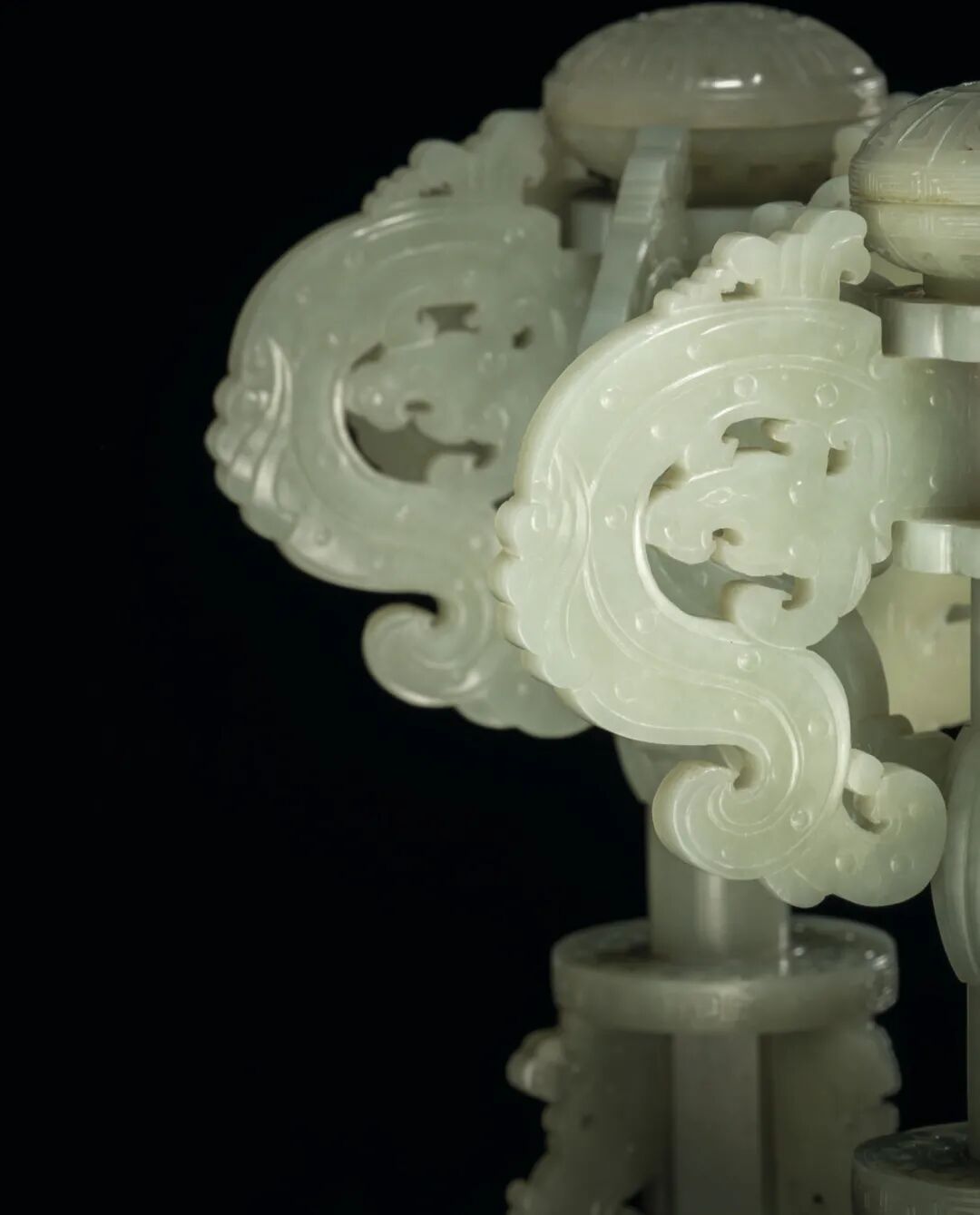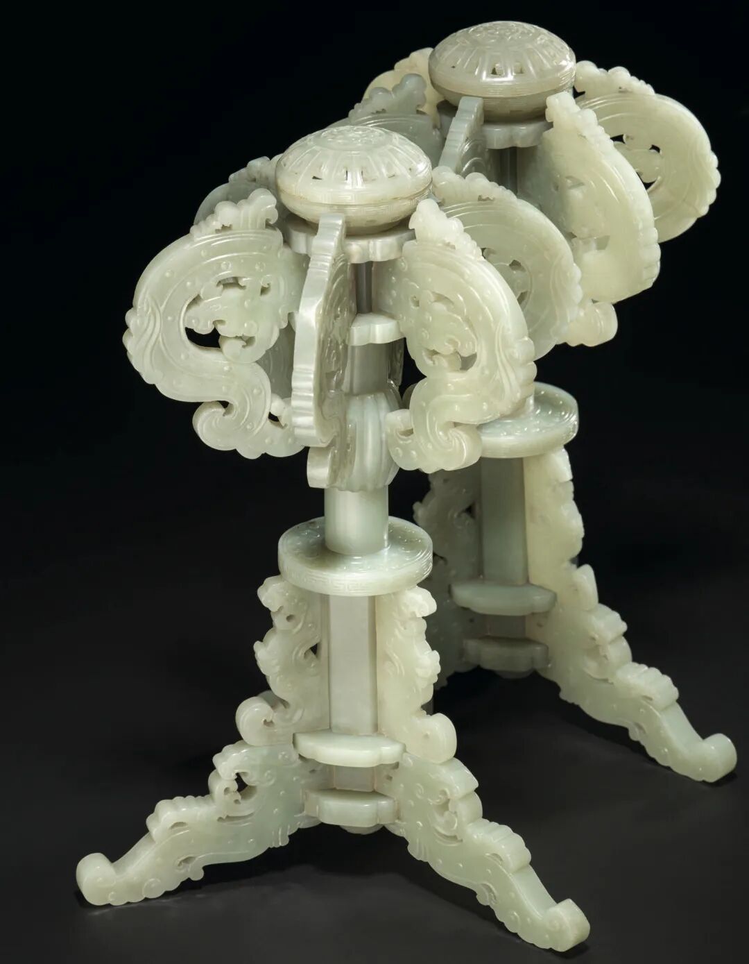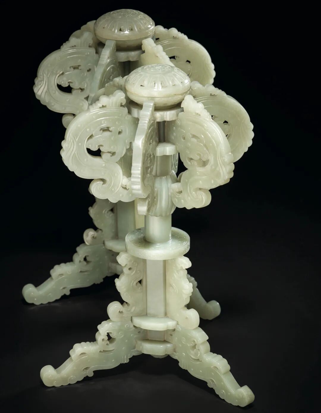 清乾隆 青白玉夔龙纹帽架一对 成交价1750000港元