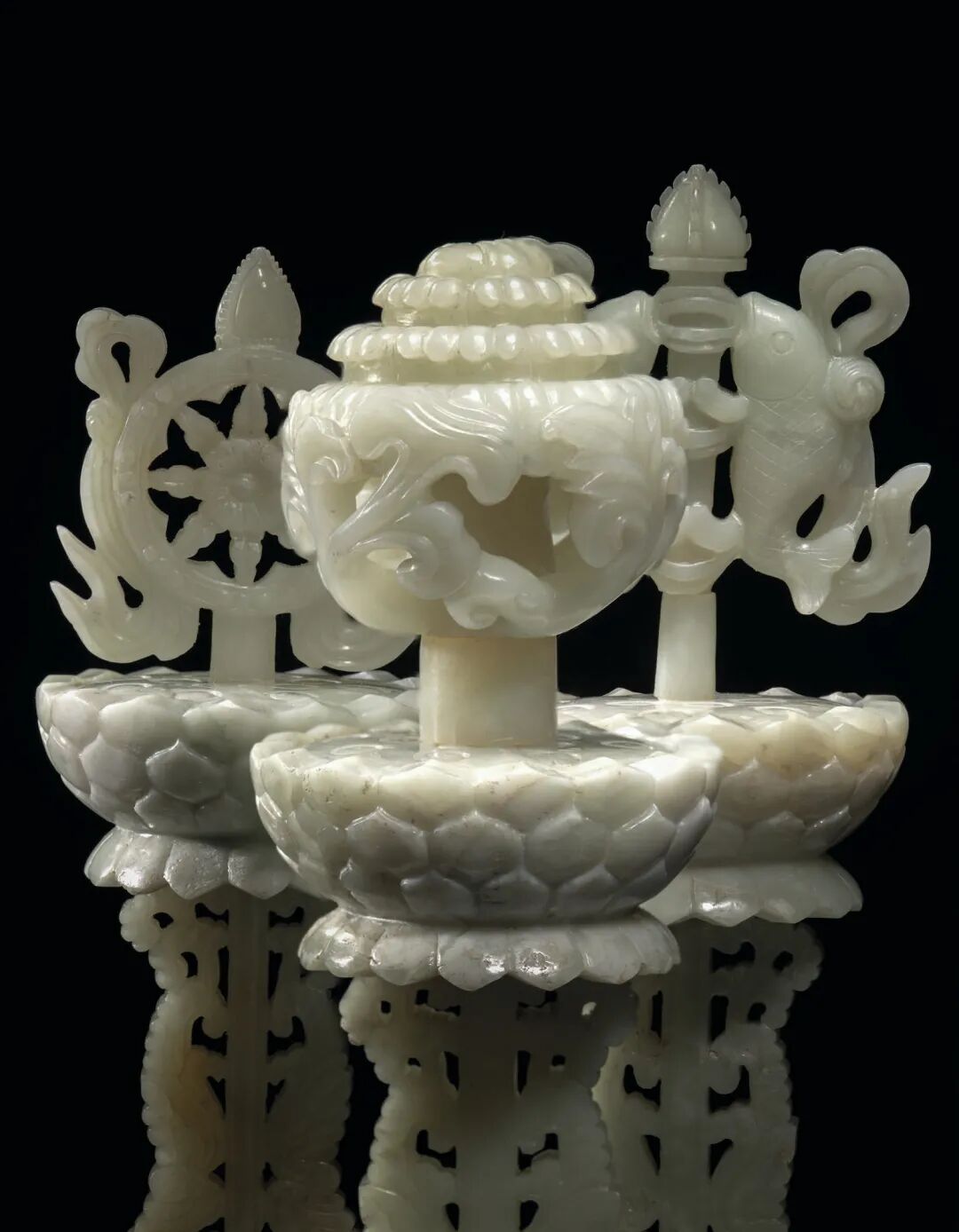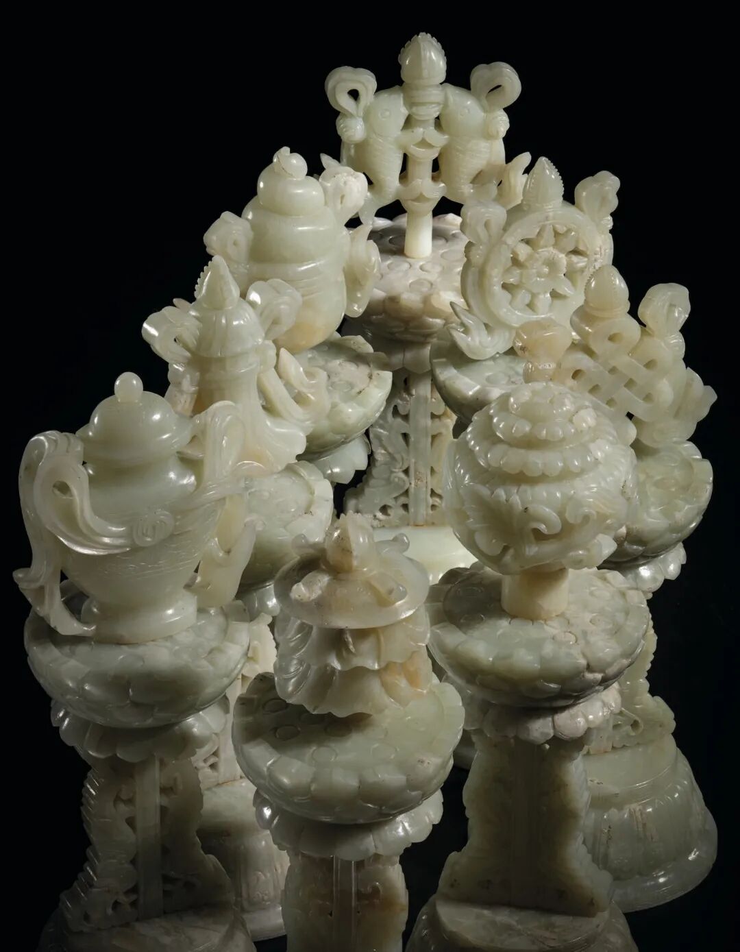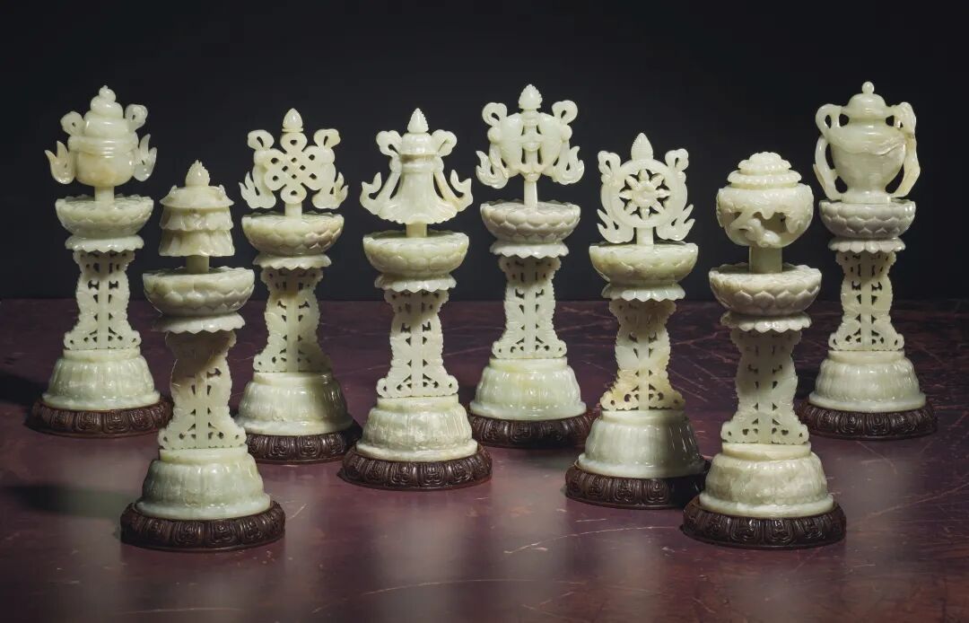 清十八世纪 青白玉八吉祥供件 成交价2500000港元