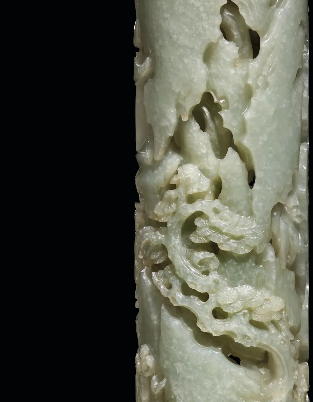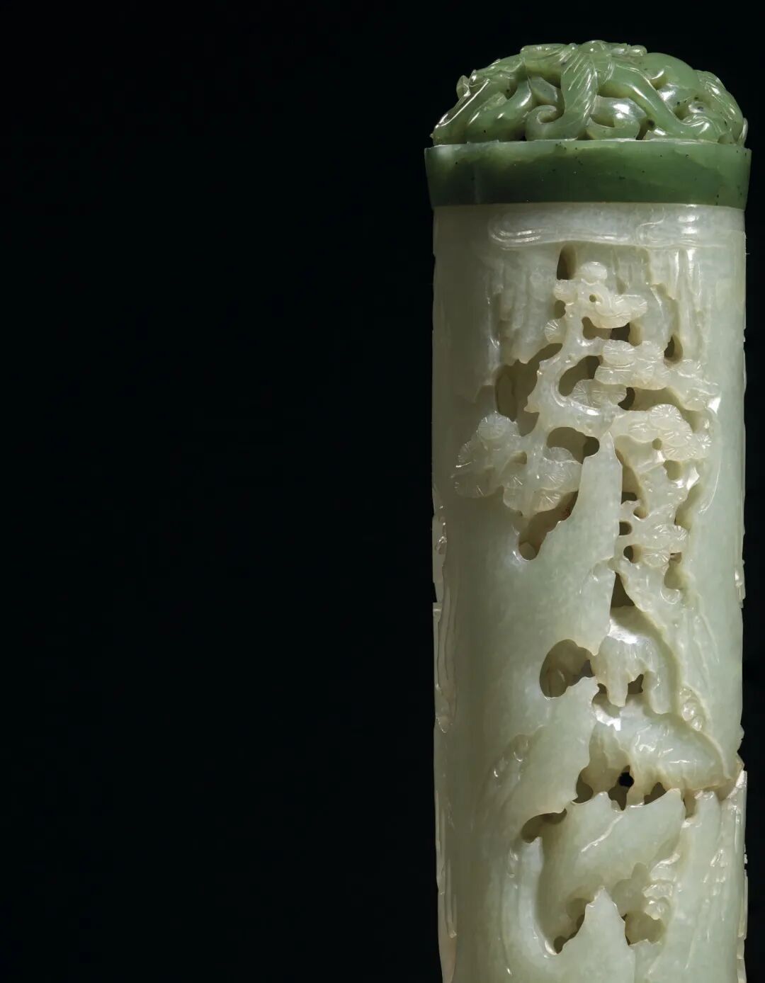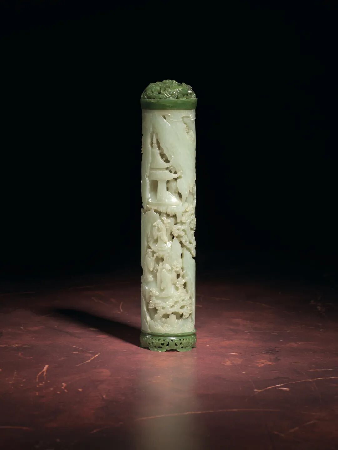 清十八世纪 白玉碧玉镂雕高士圖香筒 成交价1062500港元