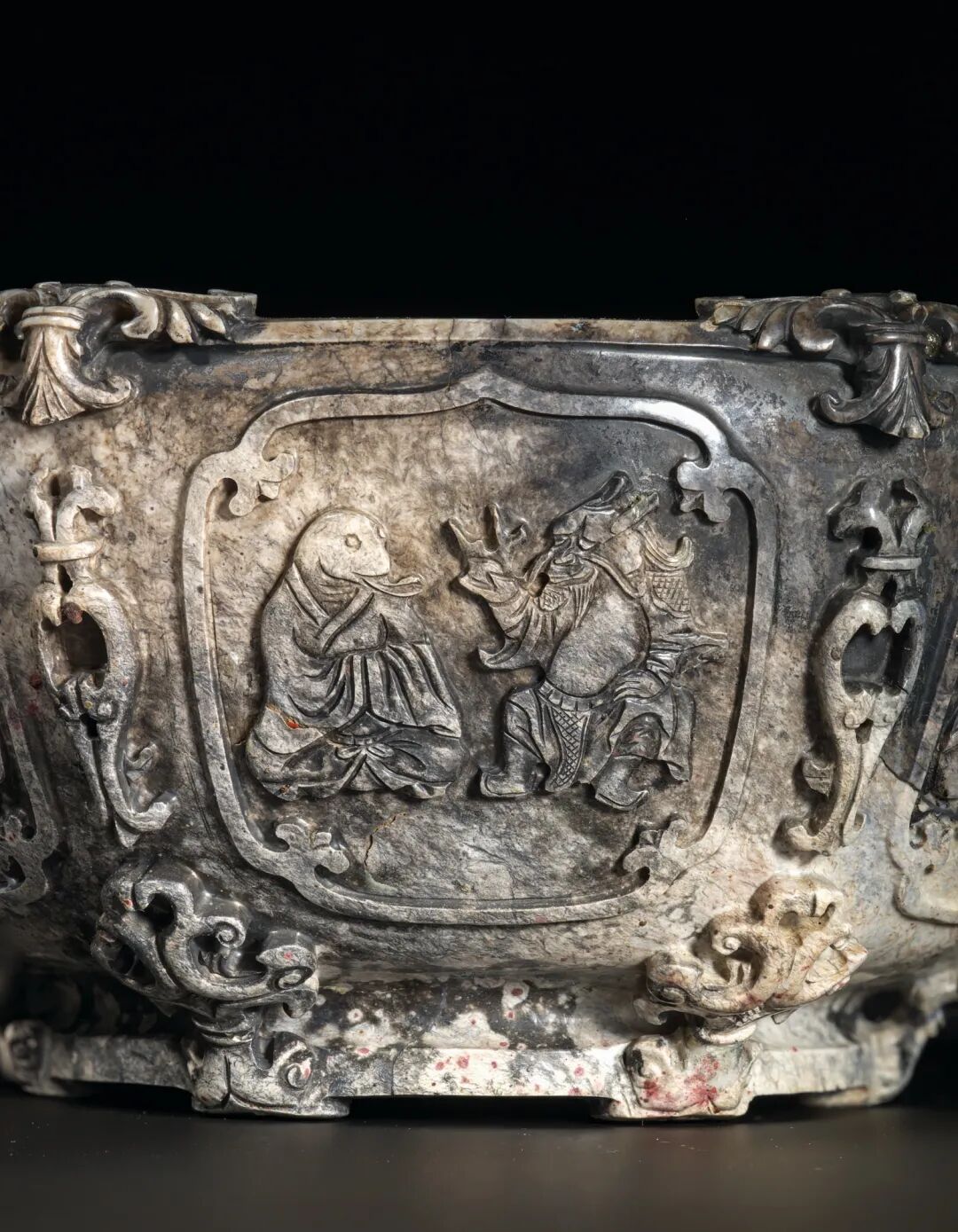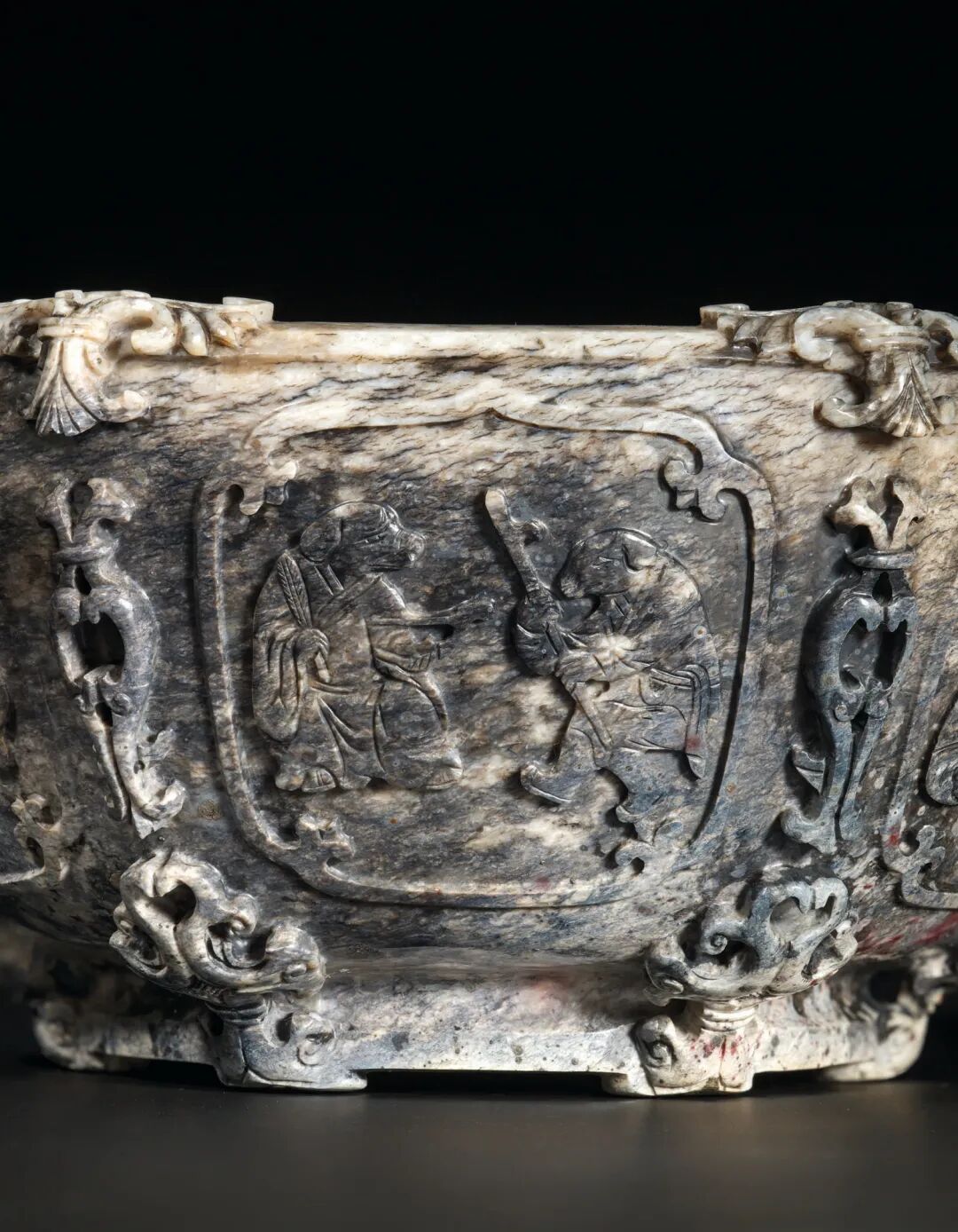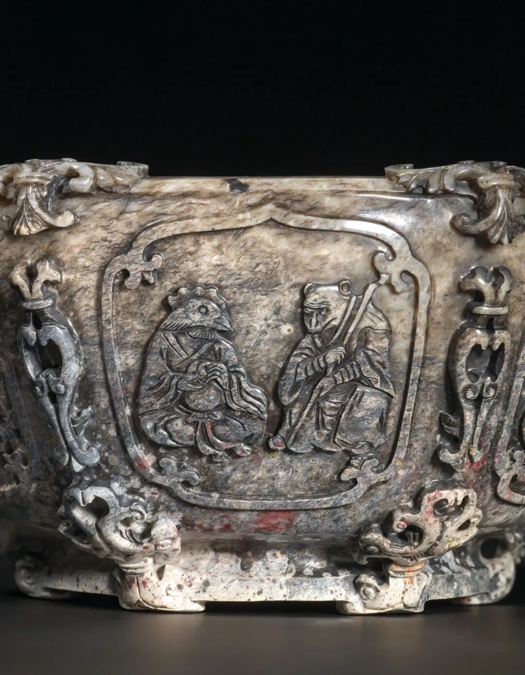 清十八世纪 白玉碧玉镂雕高士圖香筒 成交价1062500港元