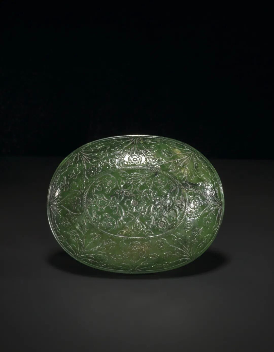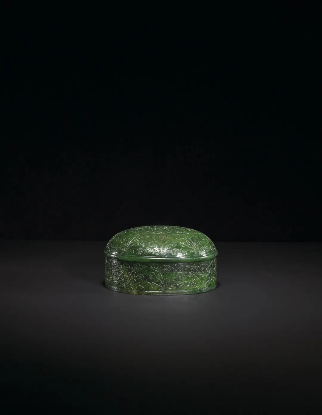 清十九世纪 痕都斯坦碧玉花卉纹盖盒 成交价200000港元