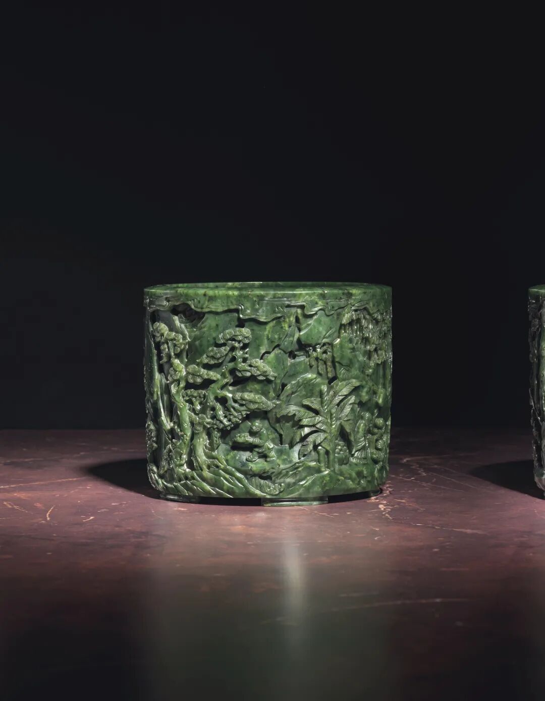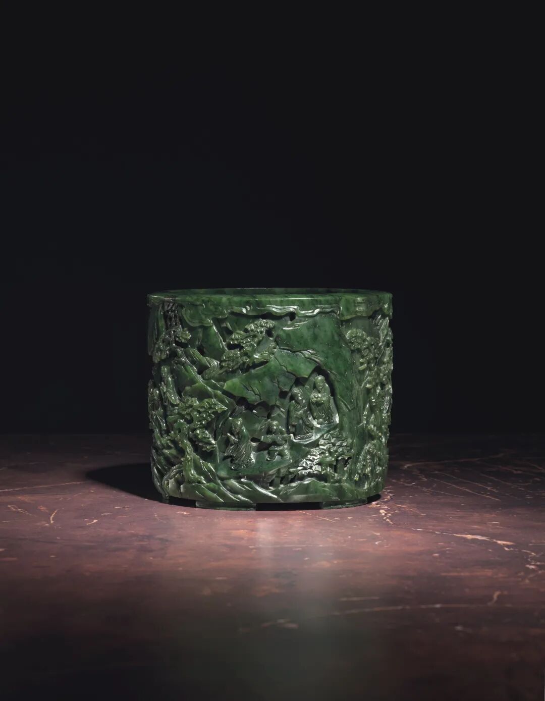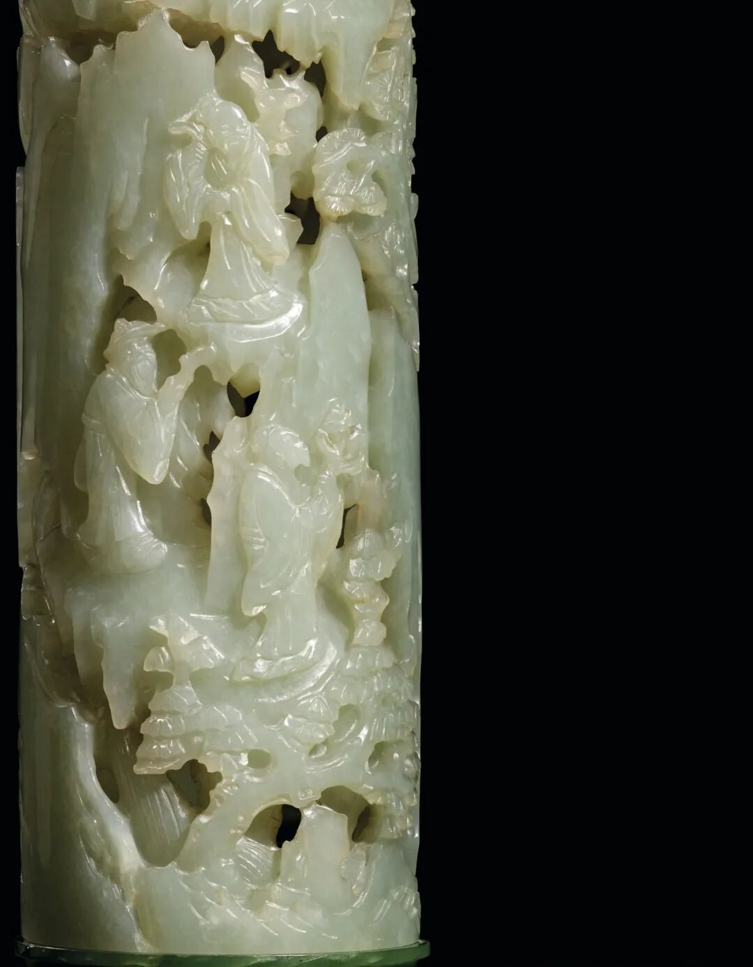 清乾隆 碧玉镂雕竹林七贤圖笔筒 成交价3500000港元