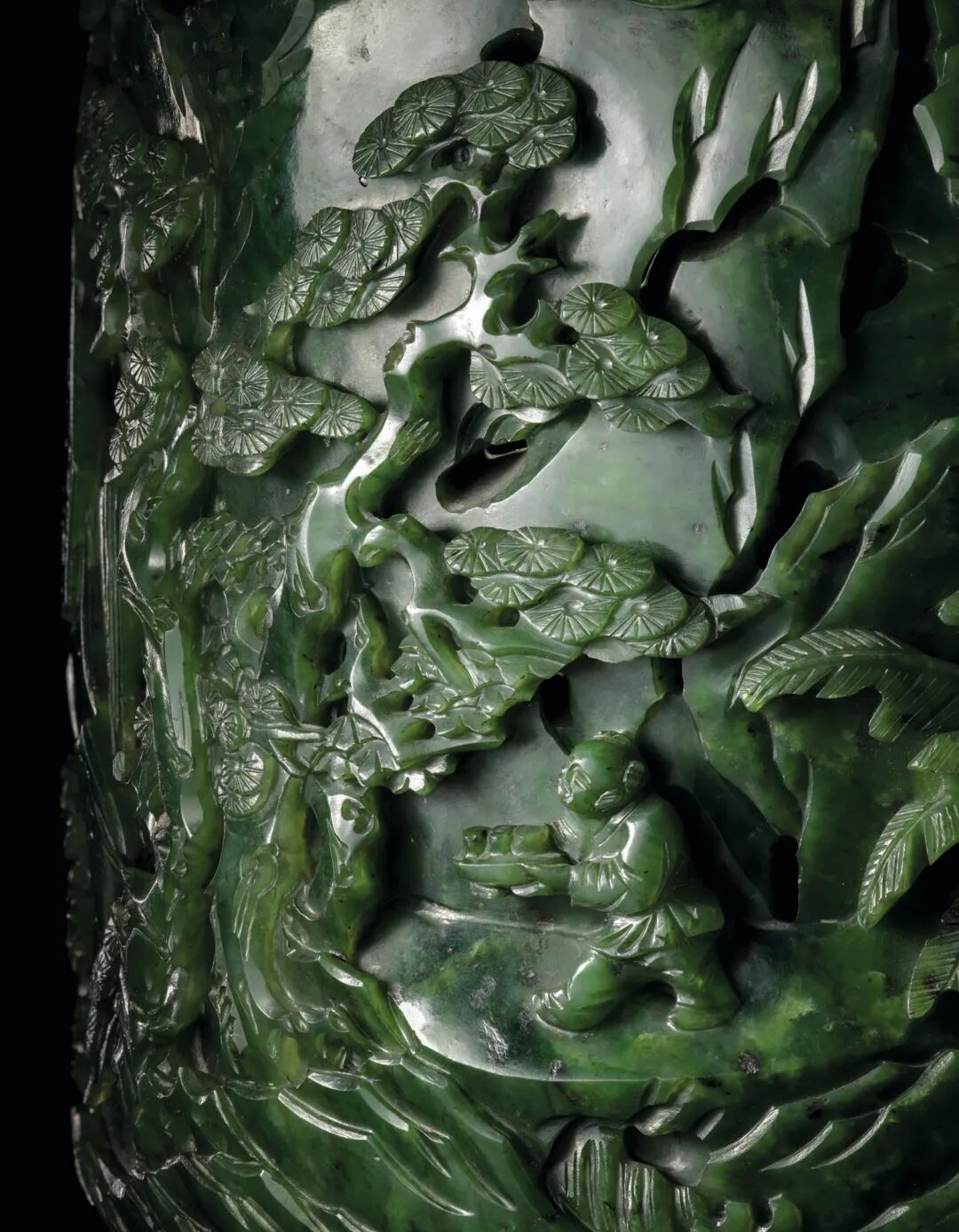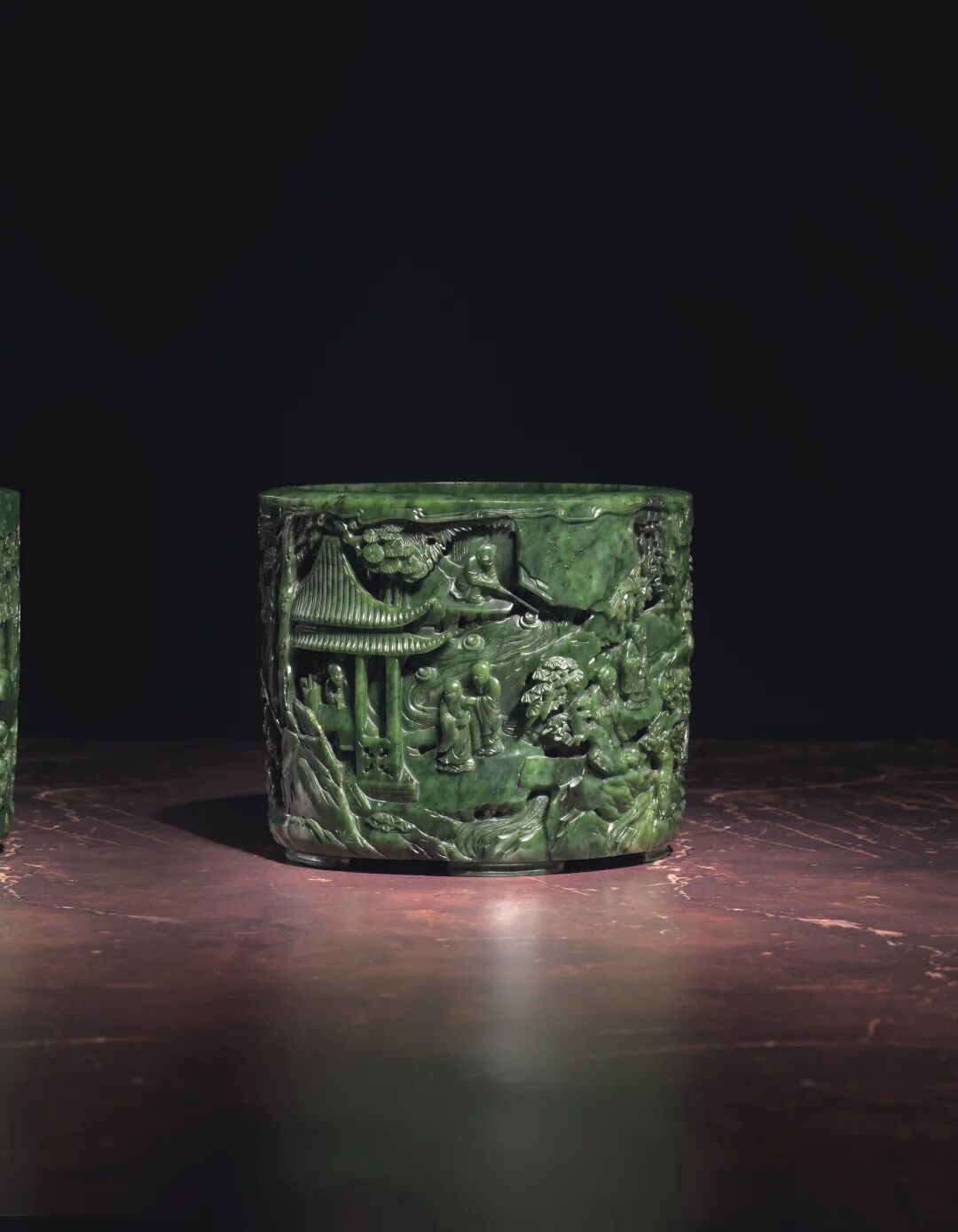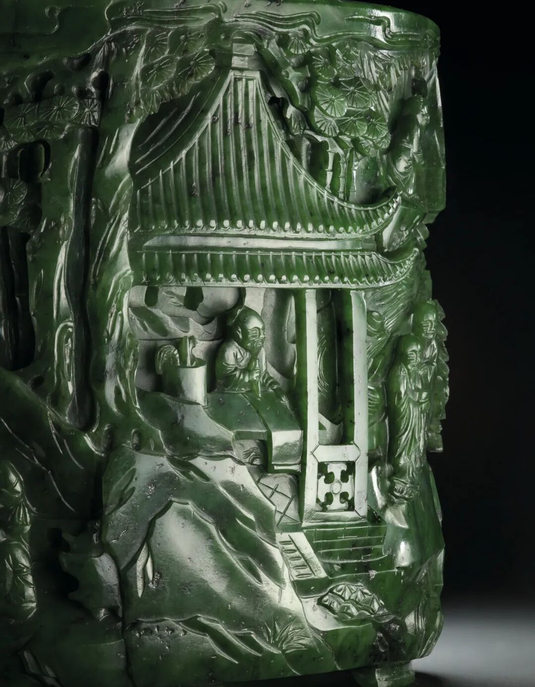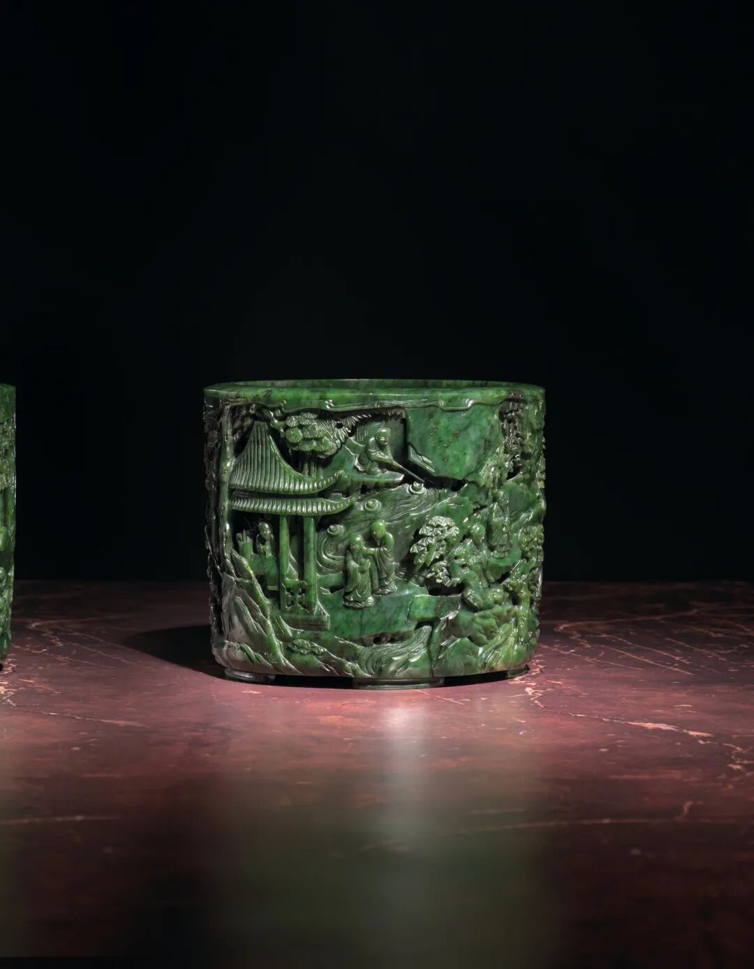 清乾隆 碧玉镂雕竹林七贤圖笔筒 成交价3500000港元