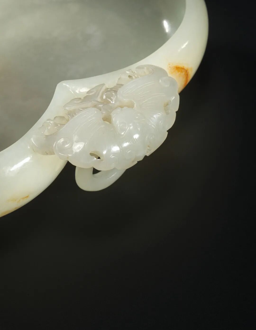 清十八世纪 白玉双蝠活环耳双联洗 成交价275000港元