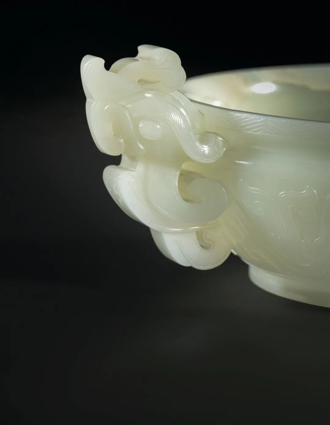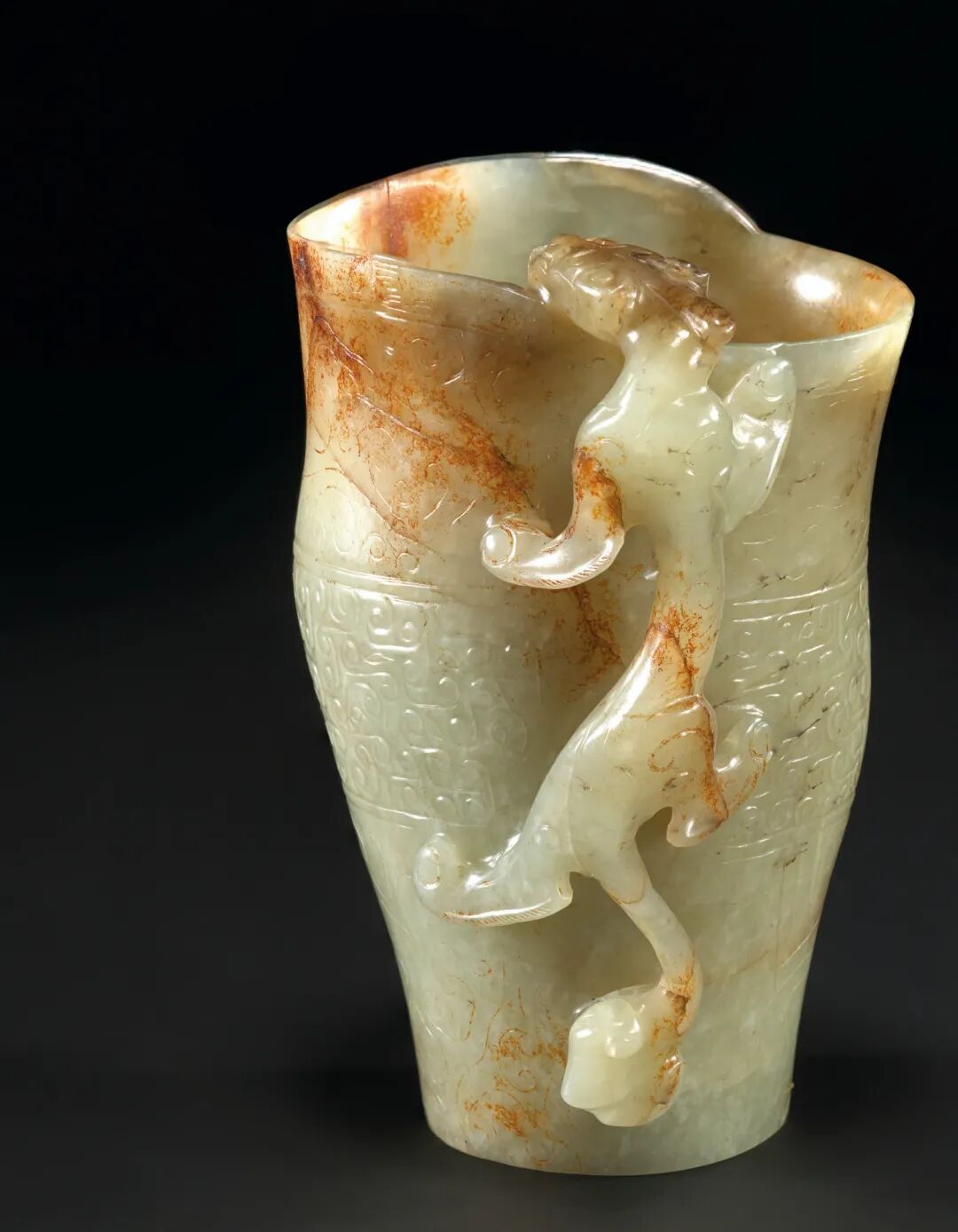 明末 青白玉仿古螭龙杯 成交价275000港元