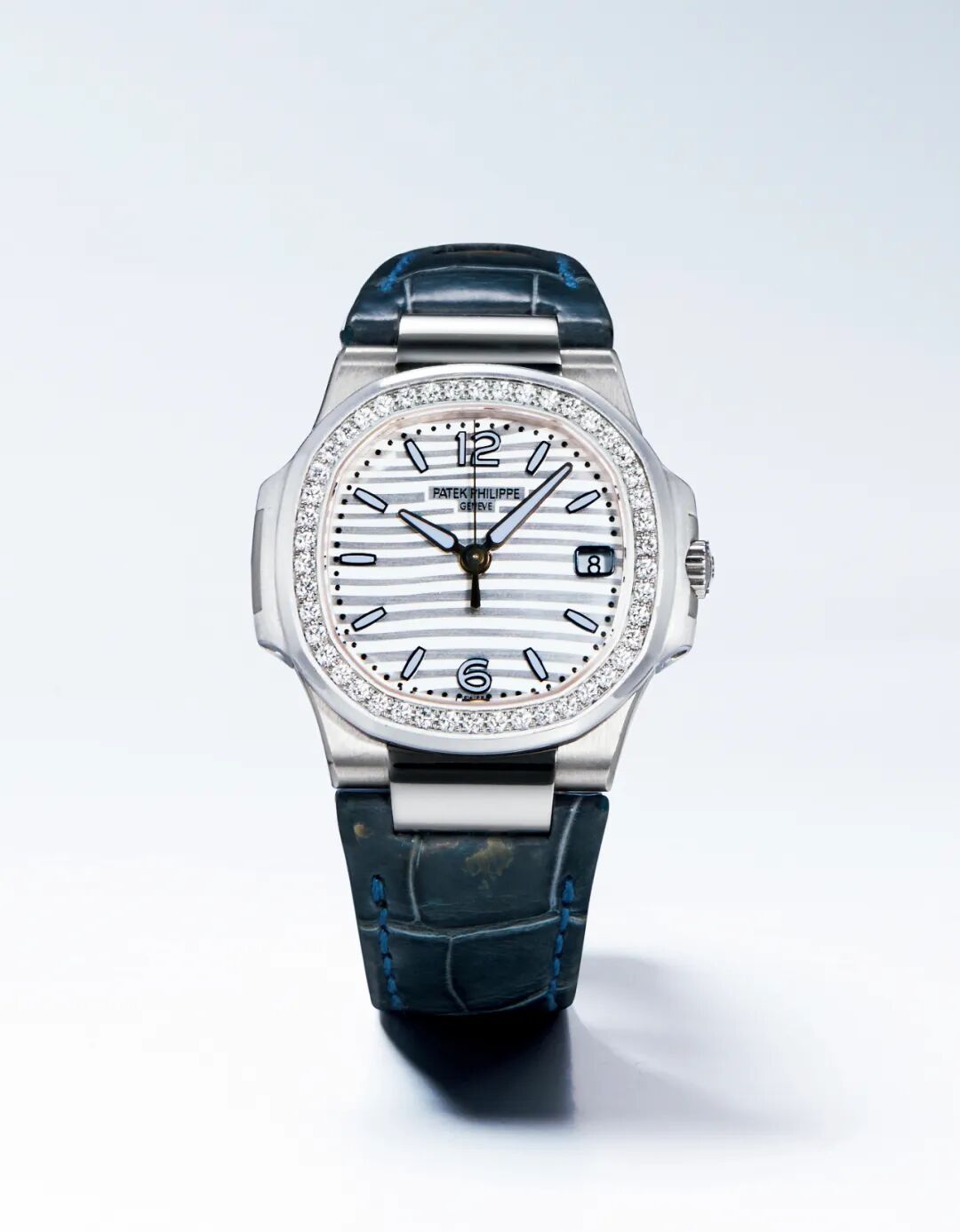 百达翡丽 18K白金女款镶钻腕表 鹦鹉螺系列,型号7010G-011