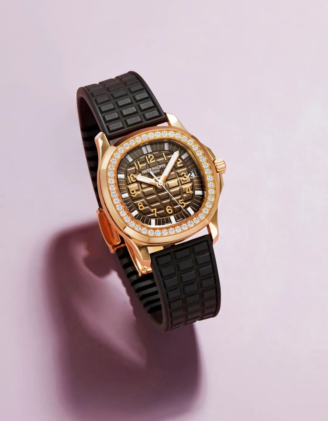 百达翡丽18K玫瑰金自动上弦镶钻腕表AQUANAUT系列,型号5068R-001