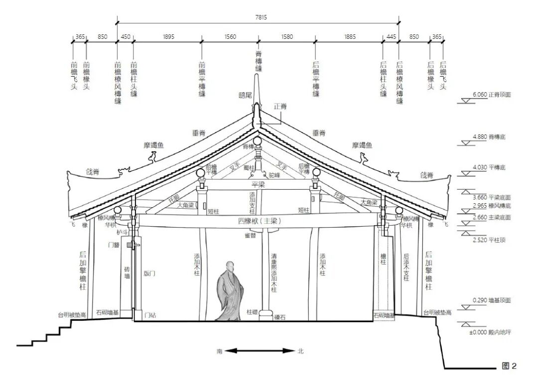 天台庵佛殿明间横剖面图/李竞扬老师绘图