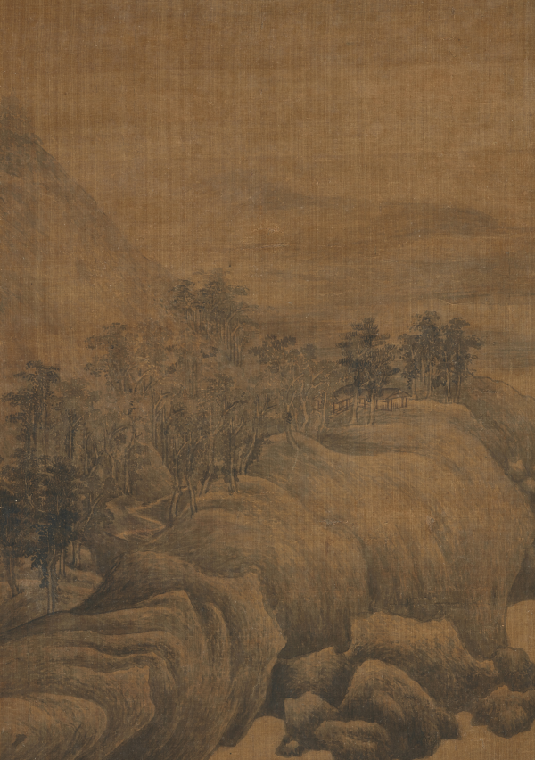 中国早期绘画多无款识,此图历来皆标曰巨然所作。巨然为钟陵人(今江苏南京),生卒年不详,早年即出家为僧。公元975年,南唐后主李煜降宋,巨然随之到开封,投谒在位,以画山水有名于时。中国的山水画在五代时趋于成熟,荆浩、关仝以苍劲峭拔的风格奠定了北方画派,董源则以平淡柔和的笔墨描写江南山水的秀逸。巨然是董源风格的主要继承人,后世并称董、巨。二者对后世的影响极其重大,晚清吴大澄曾言:「子久(黄公望)、仲圭(吴镇)皆从董巨得来,后来惟董思白(其昌)、王廉州(鉴)抉其精随。」此四者皆为南派重要传承者,为后世临写之楷模,明清署临大痴、仲圭者可谓主流,近代仿文敏、元照者亦为大众。溯其源头,皆源自董巨笔下的苍岚秀逸,可谓中国文人画奠基者。