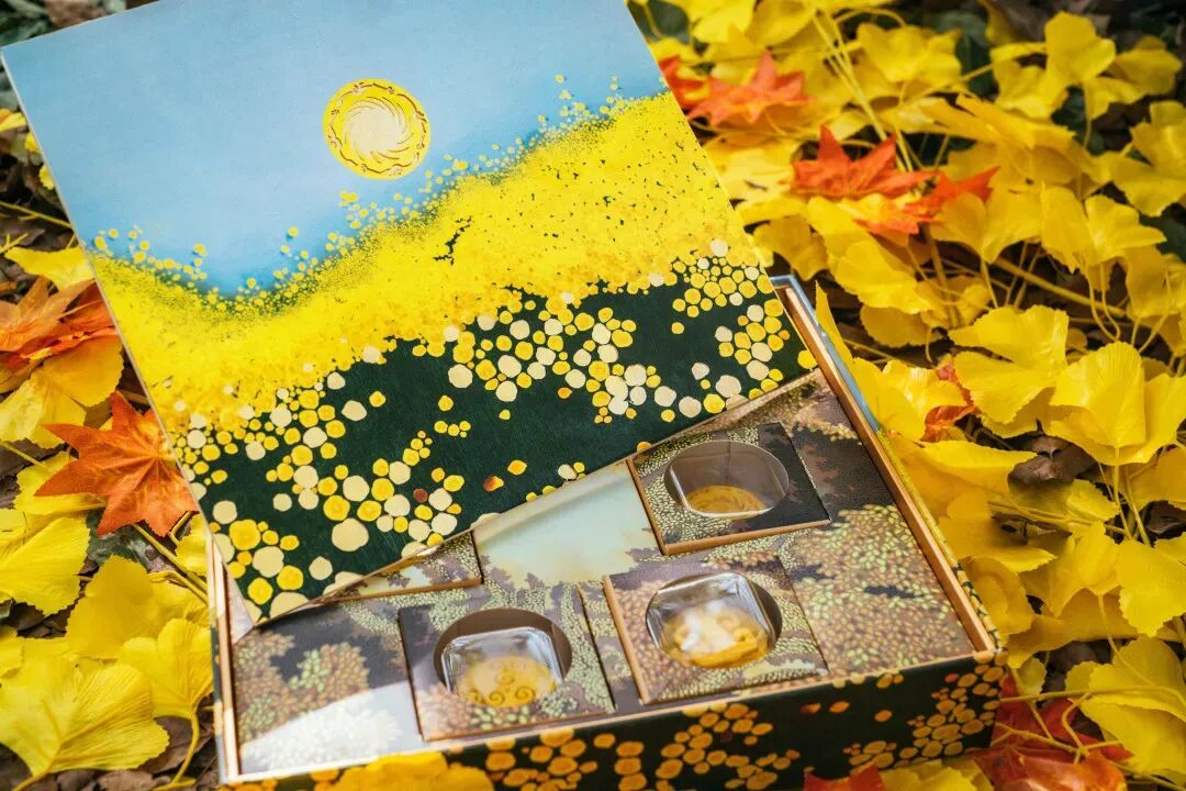 并且礼盒中还包含了两款“消失的月饼”:西施醉月和银河夜月。这两种口味是中国大酒店团队对广州博物馆馆藏的百年月饼食谱进行研发探索所还原出来的,再加上改良研发的“珠宫映月”、“花香融月”、“观海蟹月”三款创新口味,诗意十足,演绎务实的广州人骨子里的浪漫情怀。