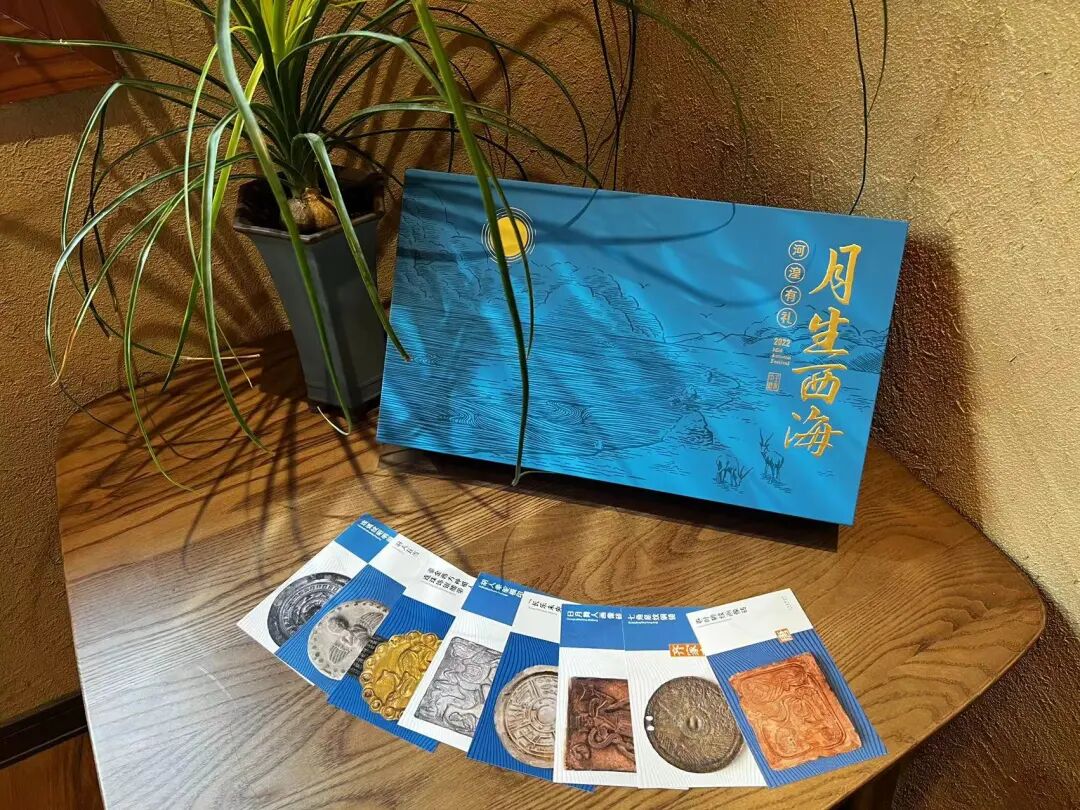 内部的小月饼盒图案,采用青海省博物馆馆藏的8件文物,烫金的线条灵感来源于绵延不绝的丹霞地貌,并且使用条纹打底,展现出青海湖波荡漾的风光。礼盒内还附带8张明信片,详细展示8件出土文物的细节,丰富了整个月饼礼盒的文化内涵。