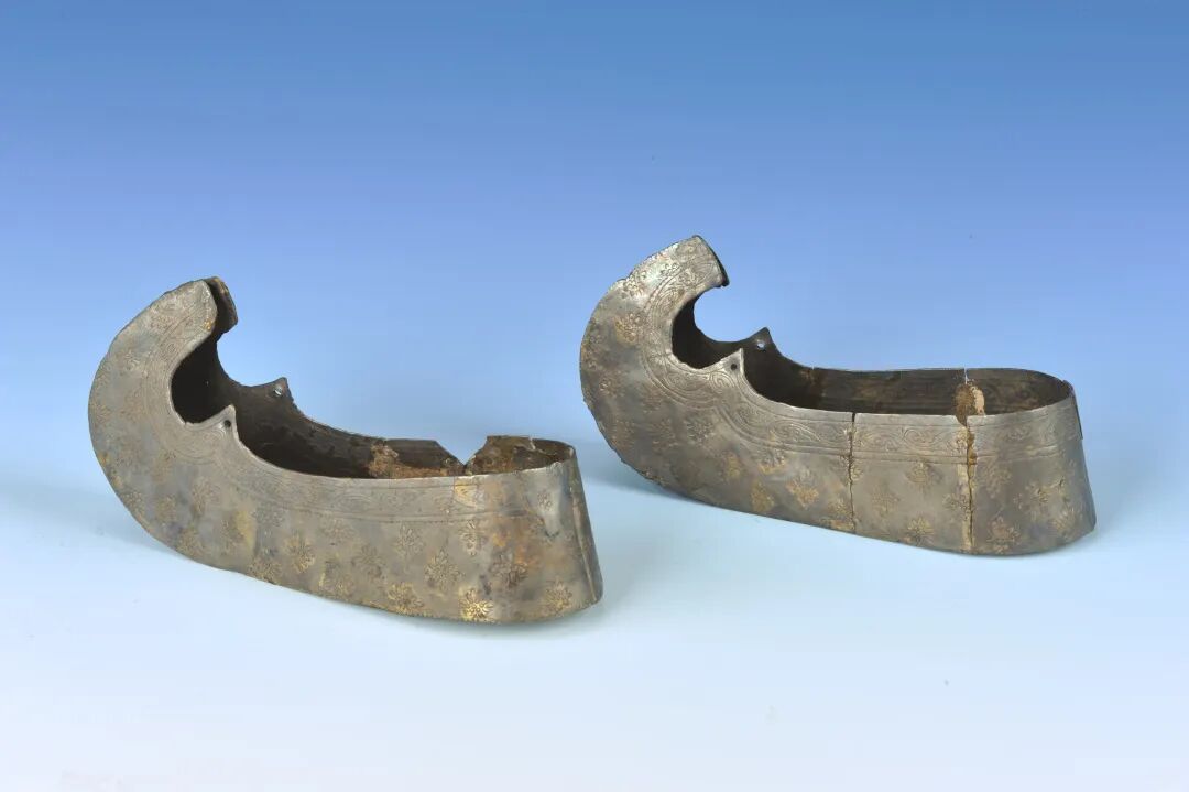 每只鞋由三块银片(鞋底一片、鞋面二片)焊接而成。鞋头上翘,口沿錾忍冬纹一周,鞋面錾宝相花,鞋底錾刻线纹及双钩“罗双双”字样。银质鞋子质地硬,应是不是生前所用而是陪葬明器。鞋子尺码小,形制与当时缠足小鞋相似,可以认为是南宋时期女子缠足的实证。