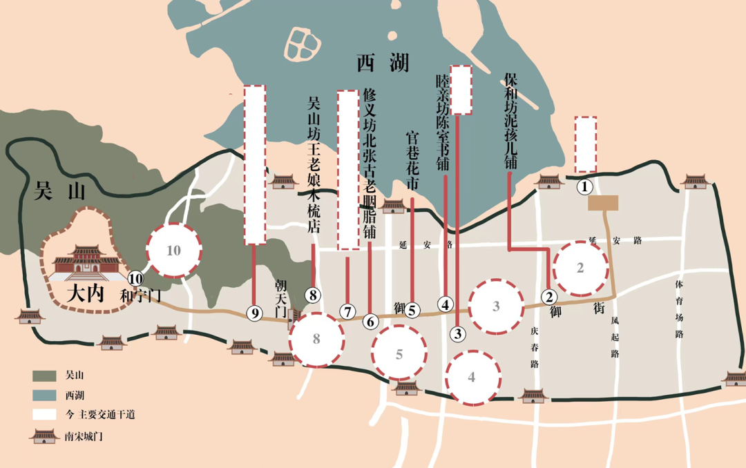 本次展览创新采用“双入口”的设计,“正叙”与“倒叙”、“正读”与“倒读”皆可,对应“站在今天的杭州城,回望约800多年前的南宋临安城”与“站在约800多年前的南宋临安城,眺望今天的杭州城”,让“双城”在同一空间重叠,观众可自由选择“从哪里开始”理解这座城。