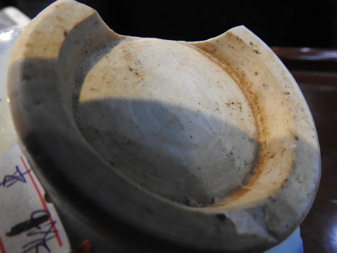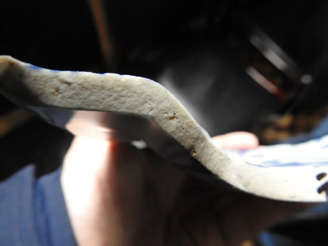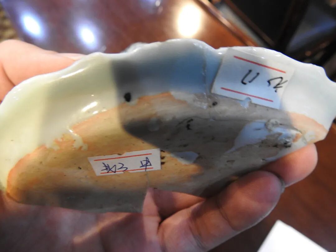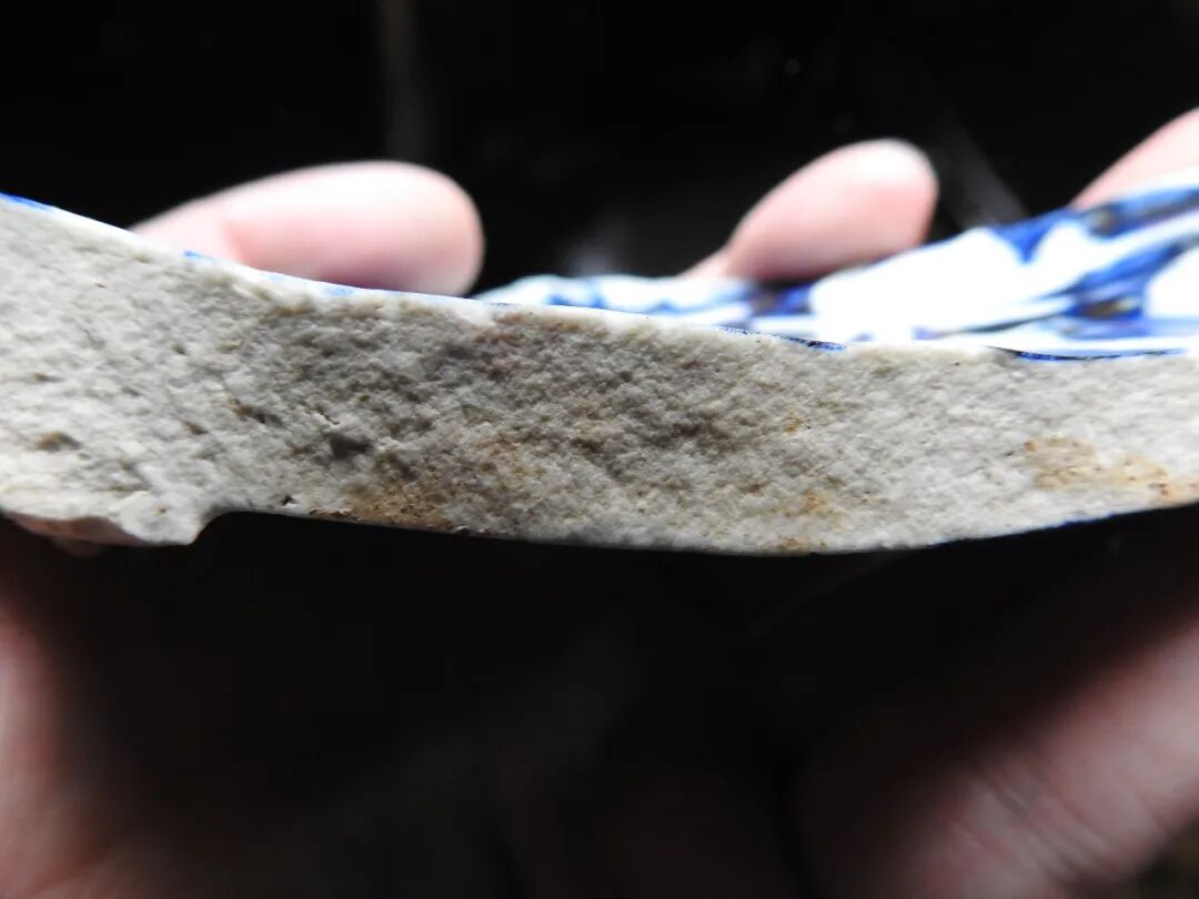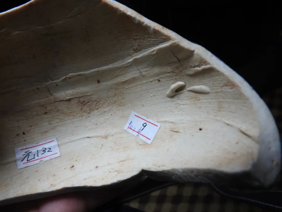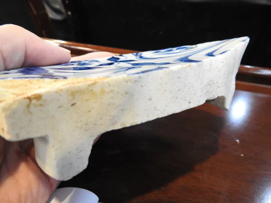 麻仓土的第一特征是有“糖点”。何为糖点?上等土烧制的瓷器洁白如玉。麻仓土由于需要粉粹,器物底有颗粒感,而高岭土为粉末状,颗粒感较弱。元代和明代烧制瓷器的胎土配方是麻仓土加上瓷石的二元混合胎质,其烧制成功后的颜色是一种白胎中微带淡黄色的呈色。其中火石红明显。清代瓷器的胎土配方是高岭土加上瓷石的二元混合胎质,其烧制成功后的颜色是一种纯粹的高白色。。明代、清代这两种胎质烧成后的呈色的不同,也是明清两朝瓷器断代的重要依据之一。