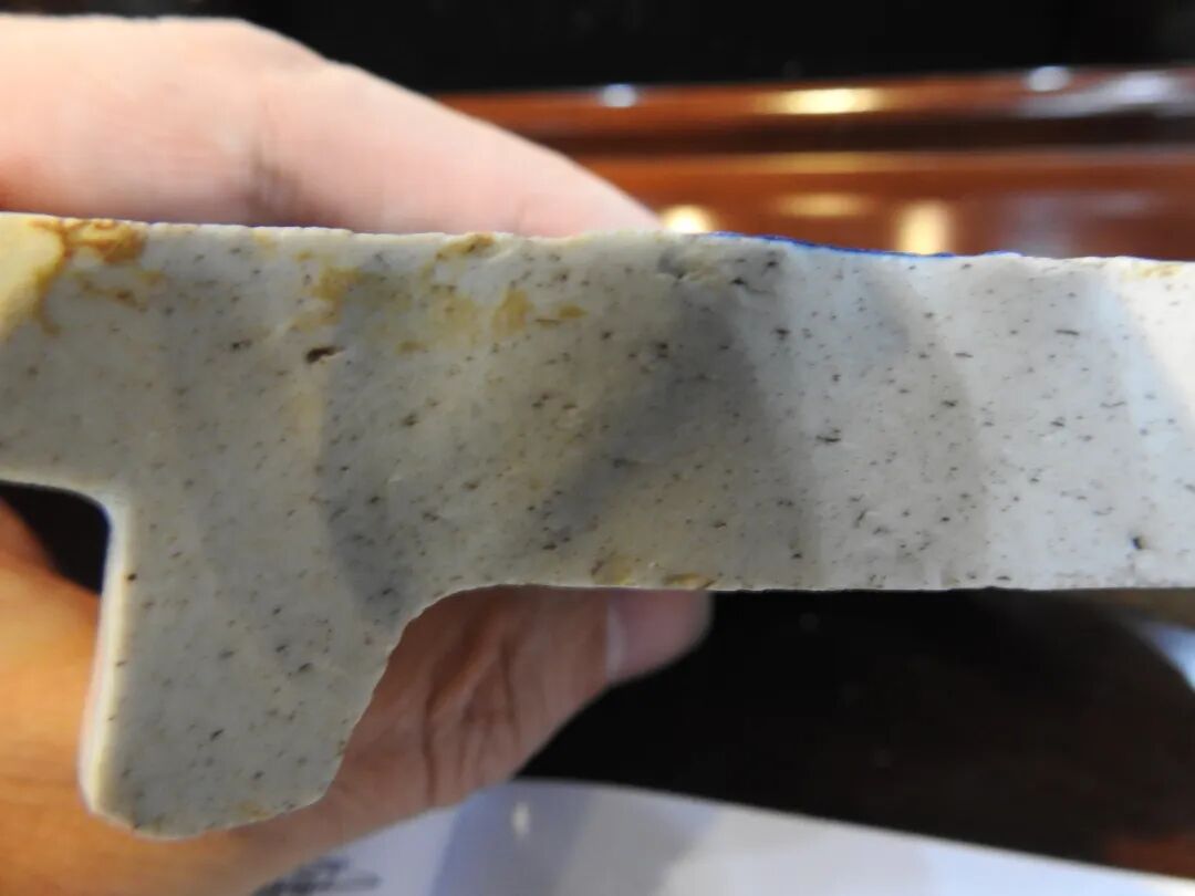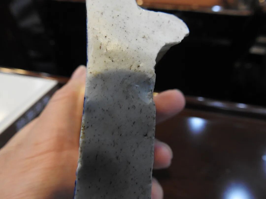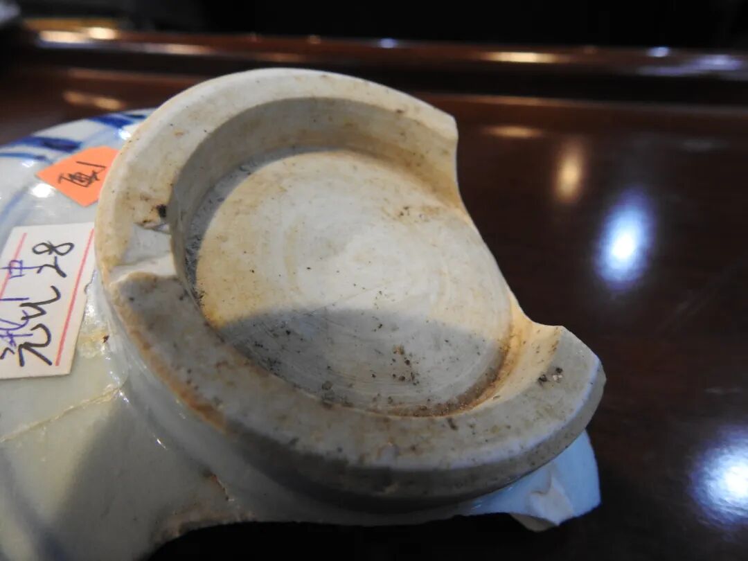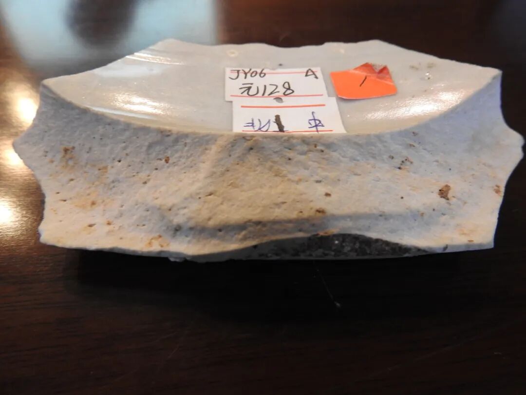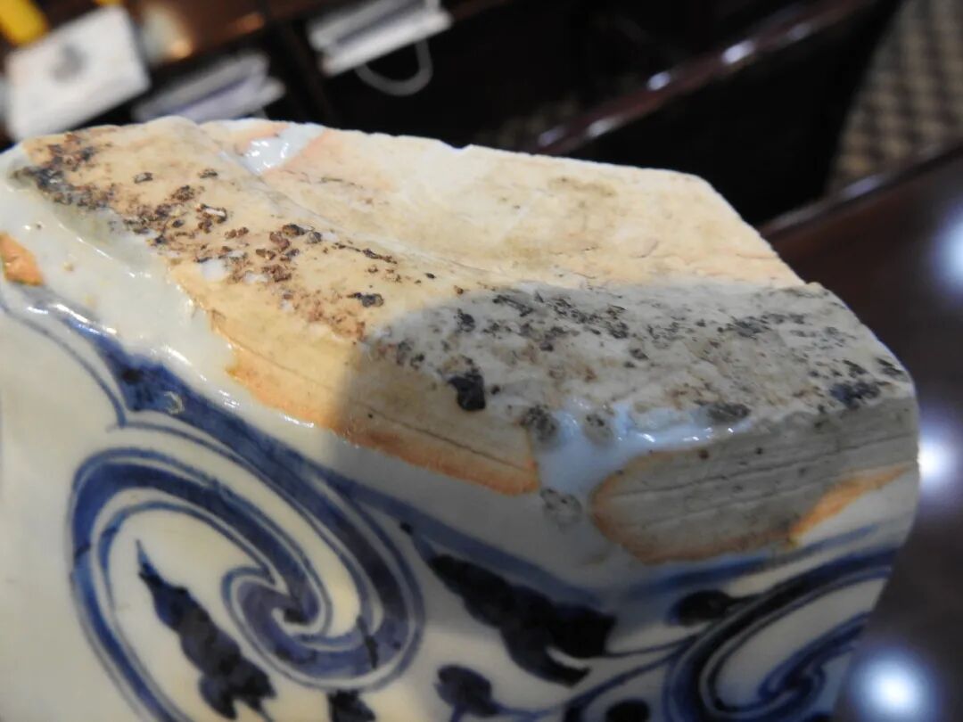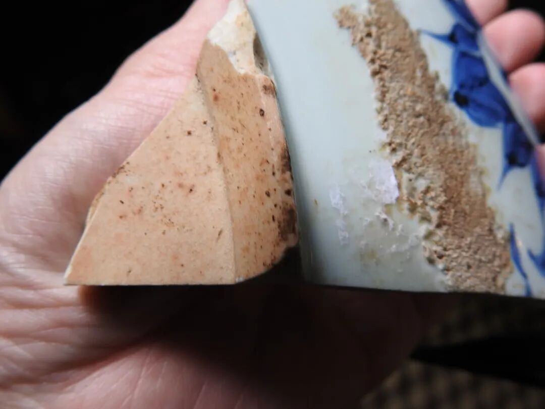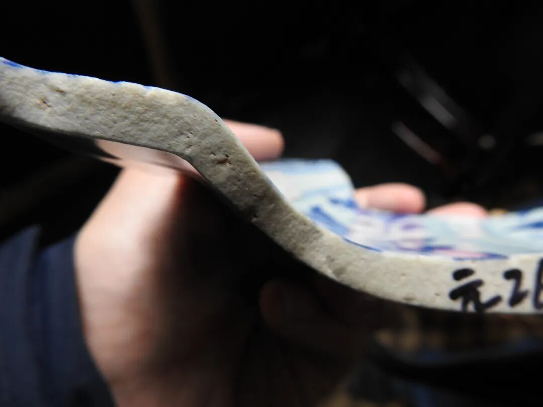 麻仓土的第一特征是有“糖点”。何为糖点?上等土烧制的瓷器洁白如玉。麻仓土由于需要粉粹,器物底有颗粒感,而高岭土为粉末状,颗粒感较弱。元代和明代烧制瓷器的胎土配方是麻仓土加上瓷石的二元混合胎质,其烧制成功后的颜色是一种白胎中微带淡黄色的呈色。其中火石红明显。清代瓷器的胎土配方是高岭土加上瓷石的二元混合胎质,其烧制成功后的颜色是一种纯粹的高白色。。明代、清代这两种胎质烧成后的呈色的不同,也是明清两朝瓷器断代的重要依据之一。