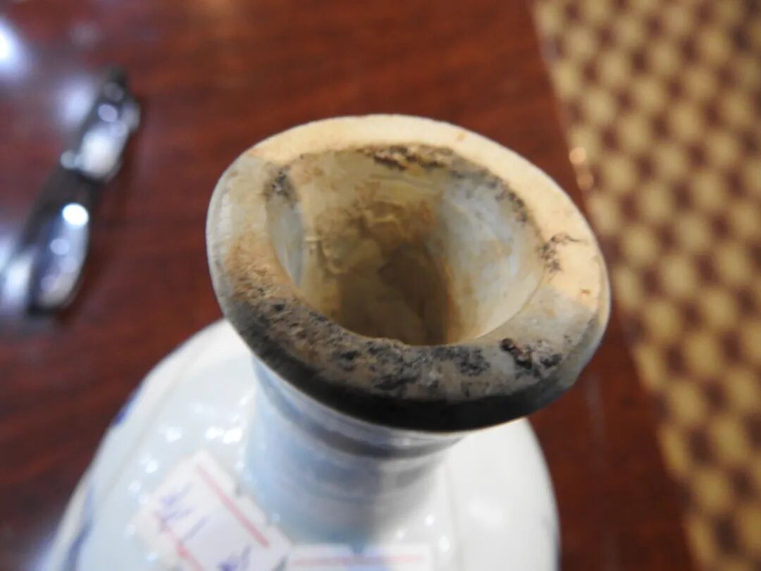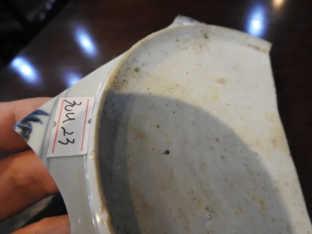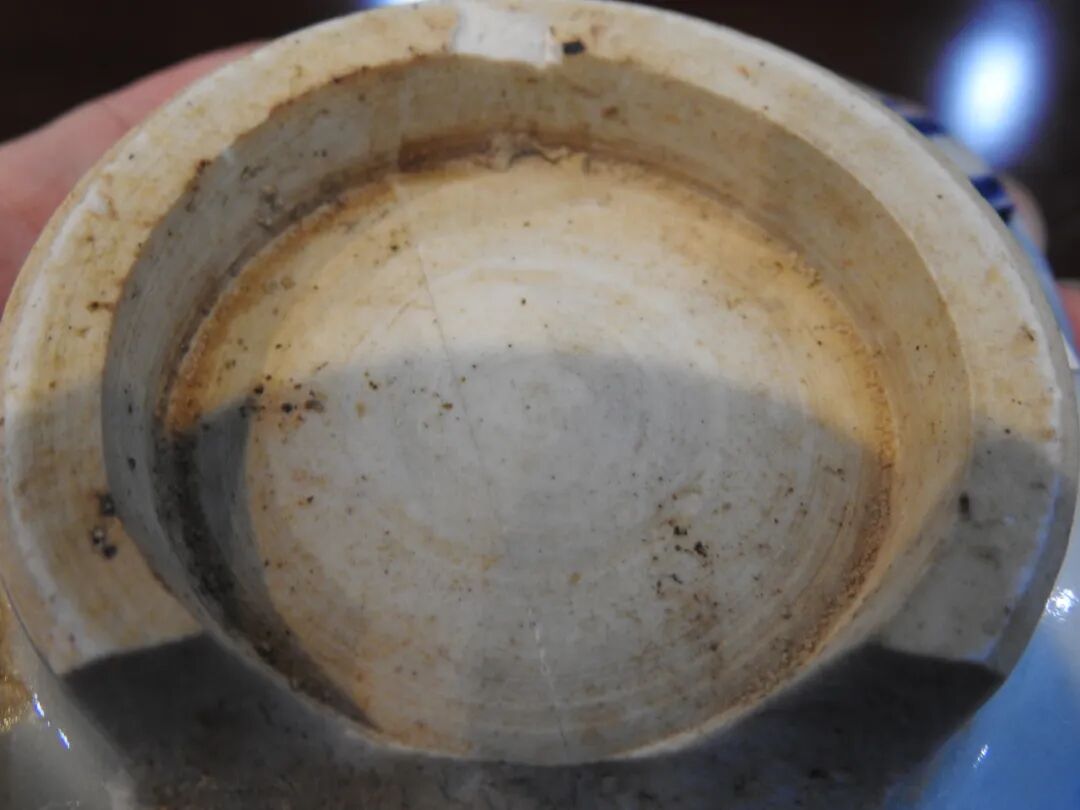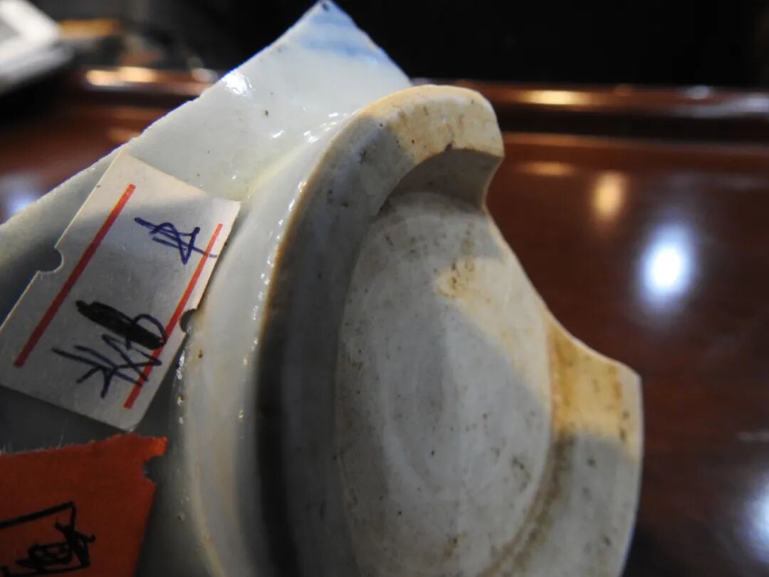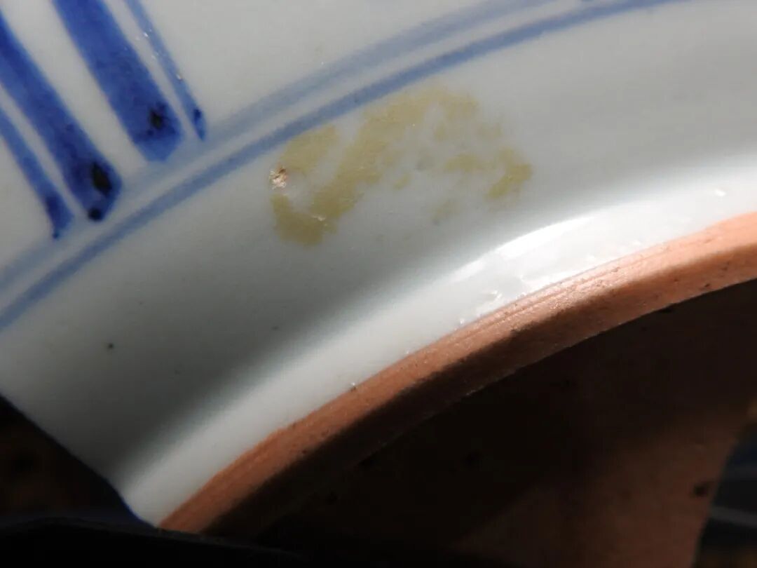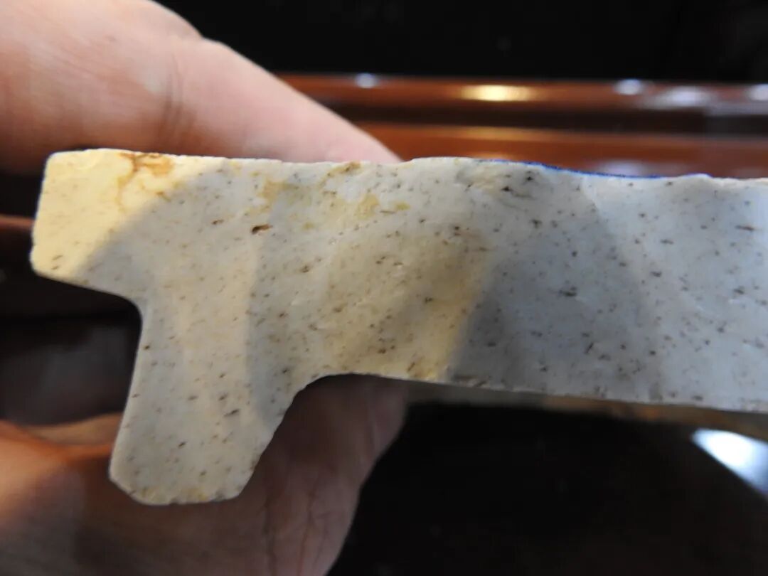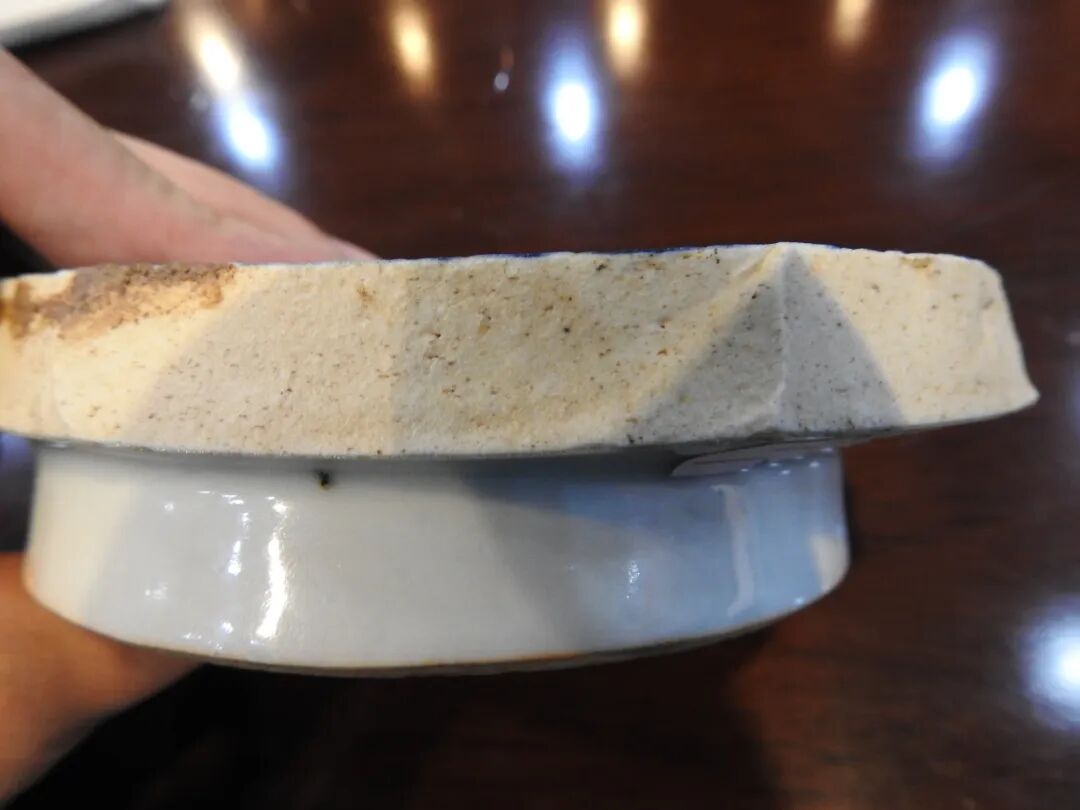 麻仓土的第一特征是有“糖点”。何为糖点?上等土烧制的瓷器洁白如玉。麻仓土由于需要粉粹,器物底有颗粒感,而高岭土为粉末状,颗粒感较弱。元代和明代烧制瓷器的胎土配方是麻仓土加上瓷石的二元混合胎质,其烧制成功后的颜色是一种白胎中微带淡黄色的呈色。其中火石红明显。清代瓷器的胎土配方是高岭土加上瓷石的二元混合胎质,其烧制成功后的颜色是一种纯粹的高白色。。明代、清代这两种胎质烧成后的呈色的不同,也是明清两朝瓷器断代的重要依据之一。