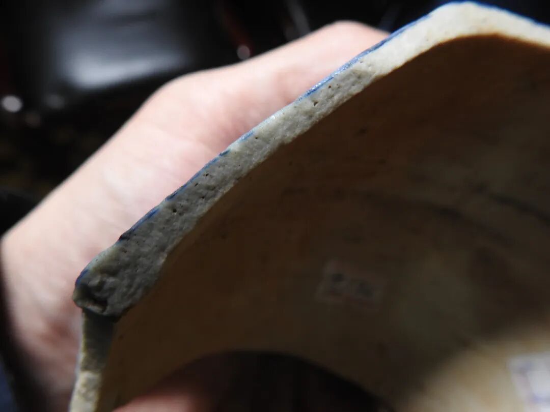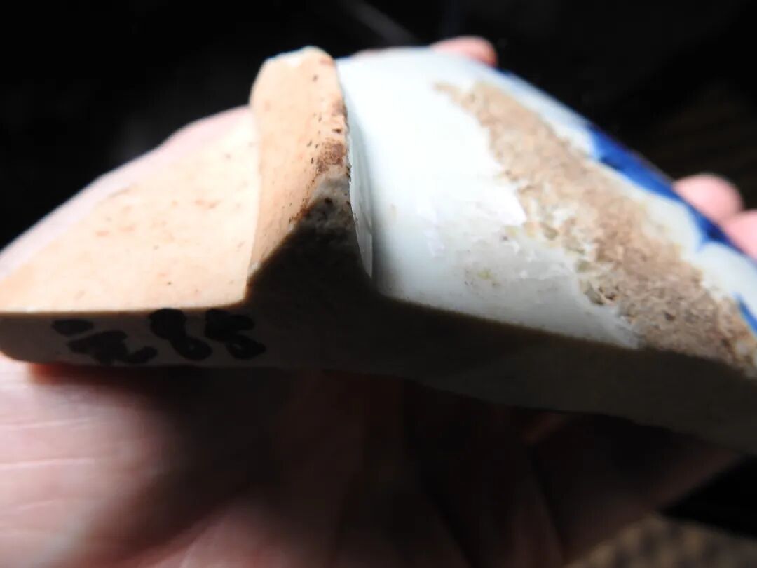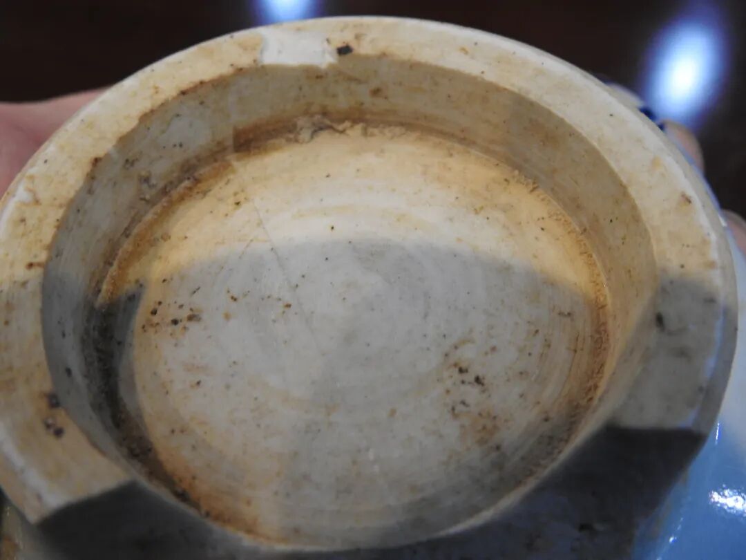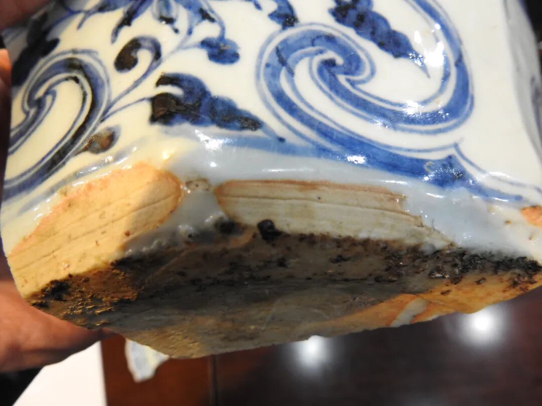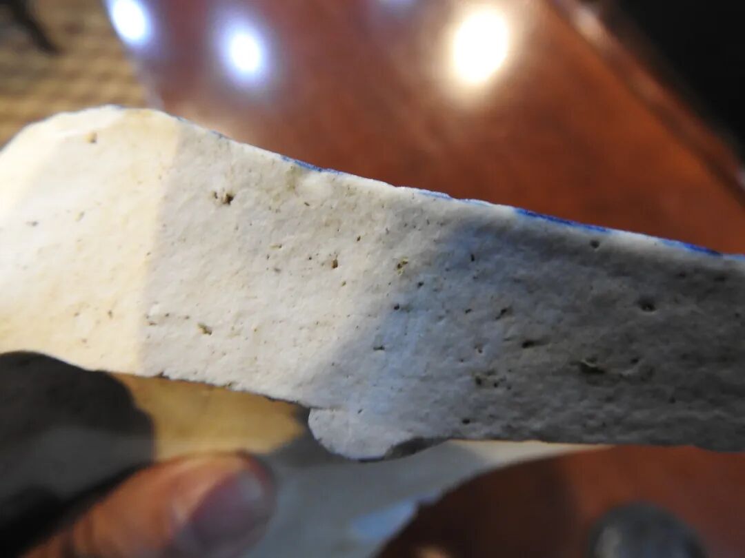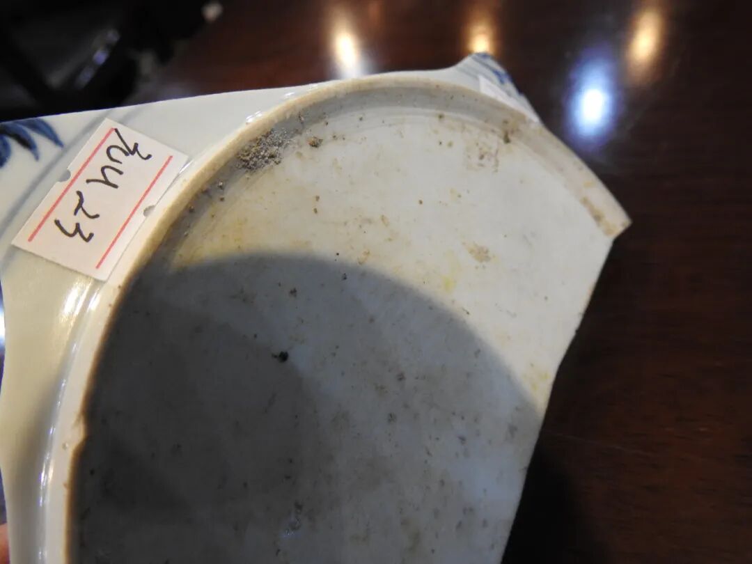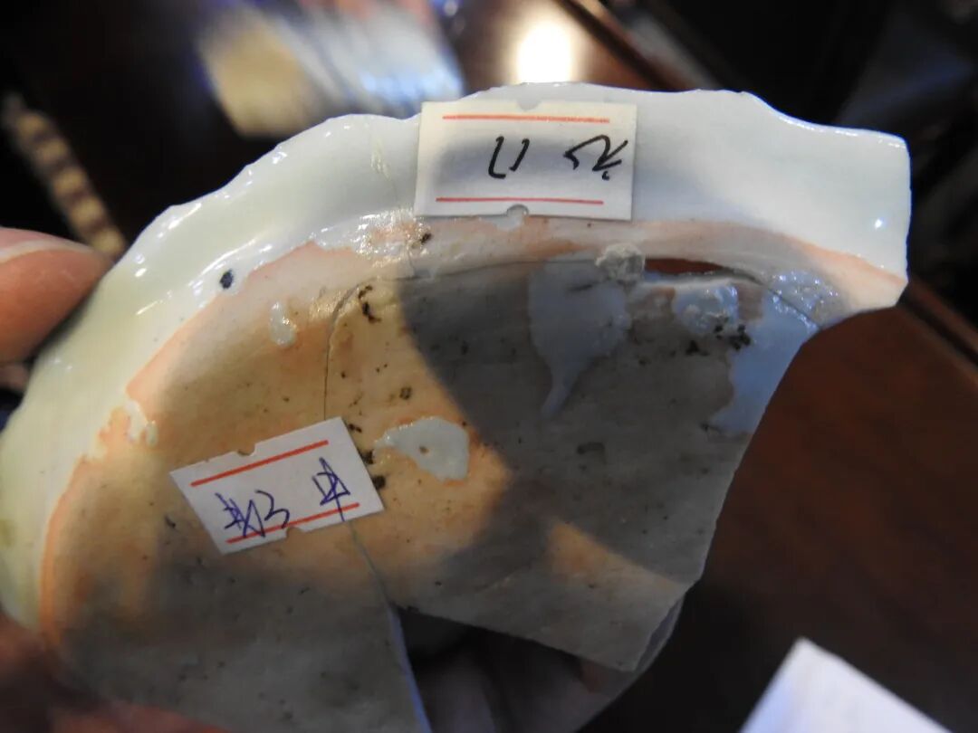 麻仓土的第一特征是有“糖点”。何为糖点?上等土烧制的瓷器洁白如玉。麻仓土由于需要粉粹,器物底有颗粒感,而高岭土为粉末状,颗粒感较弱。元代和明代烧制瓷器的胎土配方是麻仓土加上瓷石的二元混合胎质,其烧制成功后的颜色是一种白胎中微带淡黄色的呈色。其中火石红明显。清代瓷器的胎土配方是高岭土加上瓷石的二元混合胎质,其烧制成功后的颜色是一种纯粹的高白色。。明代、清代这两种胎质烧成后的呈色的不同,也是明清两朝瓷器断代的重要依据之一。
