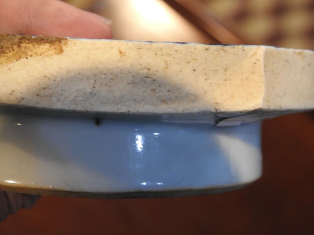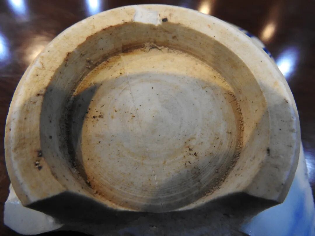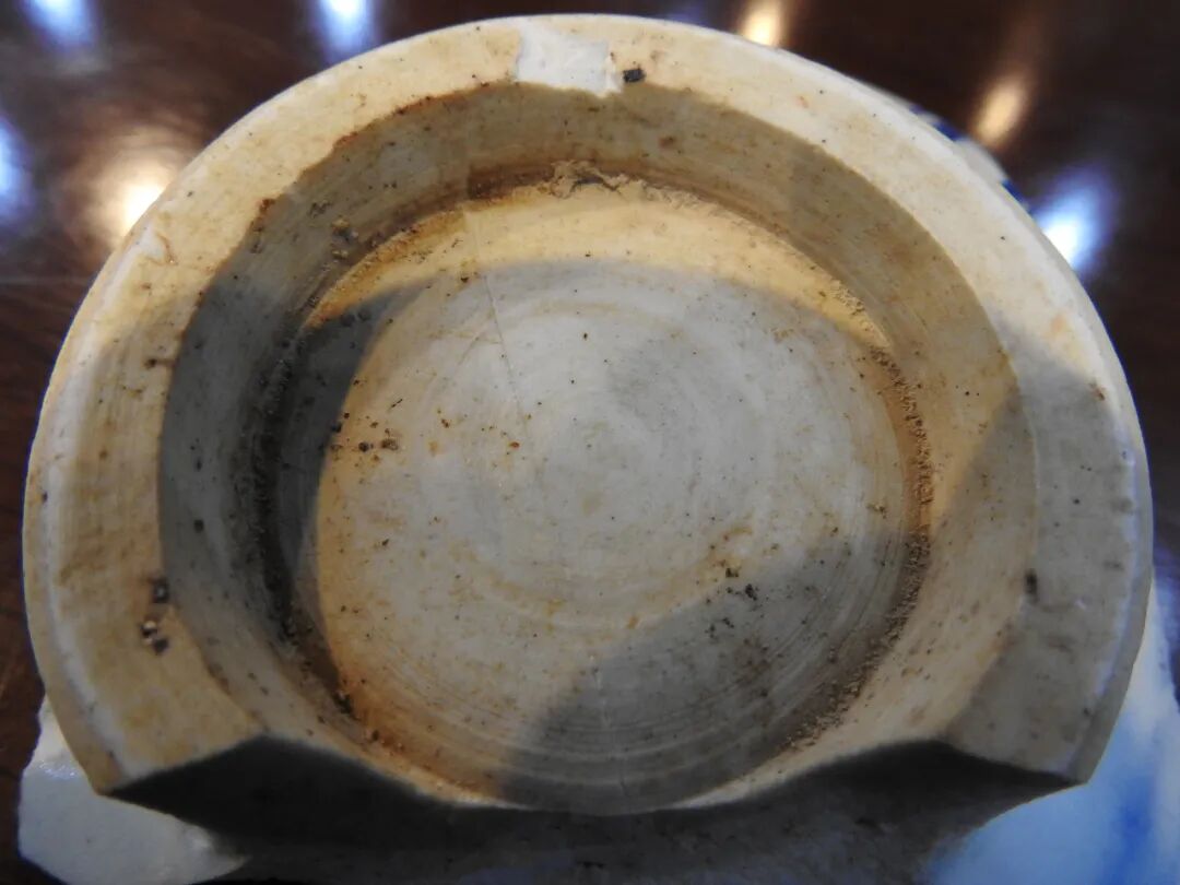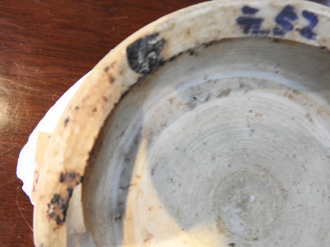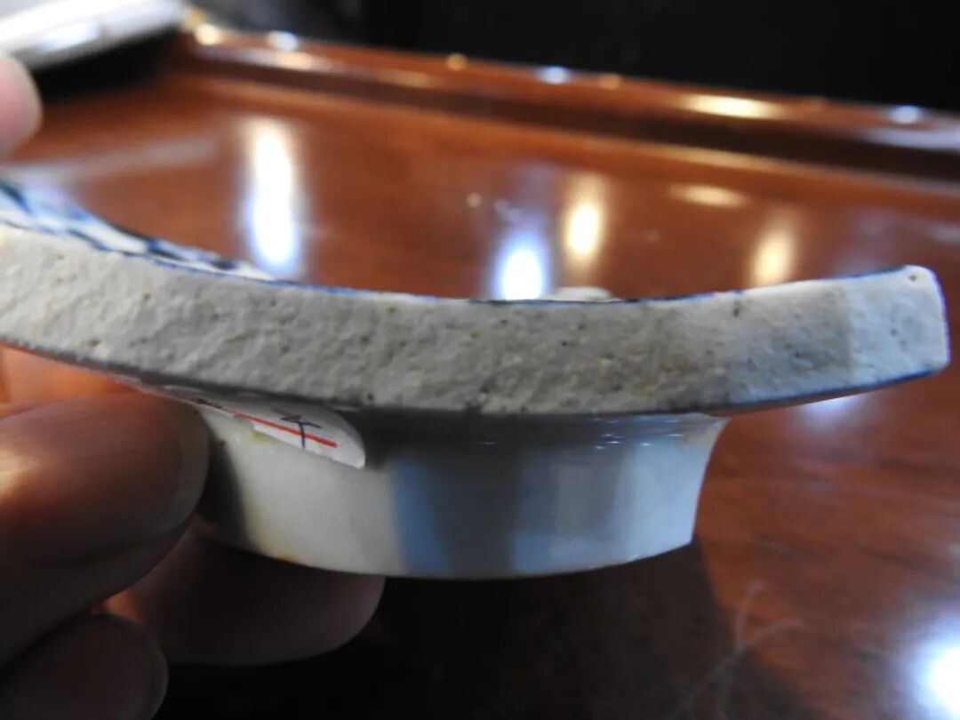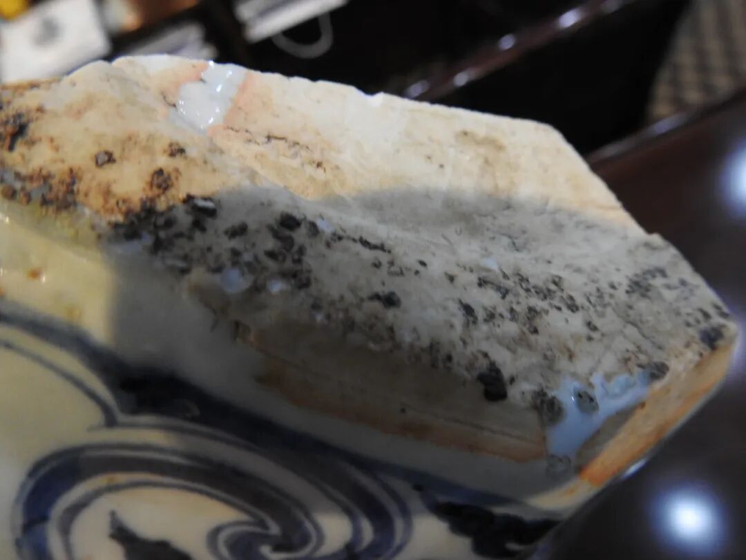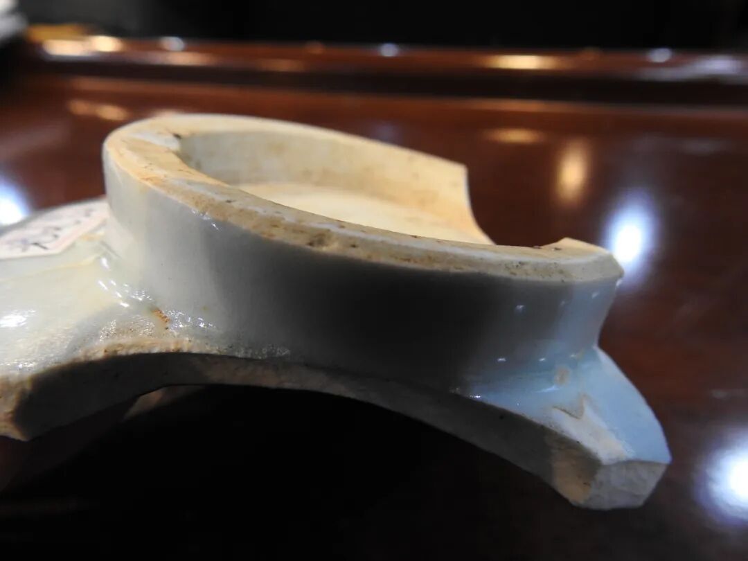 麻仓土的第一特征是有“糖点”。何为糖点?上等土烧制的瓷器洁白如玉。麻仓土由于需要粉粹,器物底有颗粒感,而高岭土为粉末状,颗粒感较弱。元代和明代烧制瓷器的胎土配方是麻仓土加上瓷石的二元混合胎质,其烧制成功后的颜色是一种白胎中微带淡黄色的呈色。其中火石红明显。清代瓷器的胎土配方是高岭土加上瓷石的二元混合胎质,其烧制成功后的颜色是一种纯粹的高白色。。明代、清代这两种胎质烧成后的呈色的不同,也是明清两朝瓷器断代的重要依据之一。