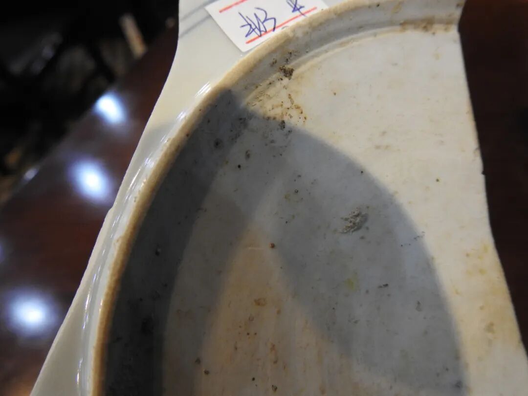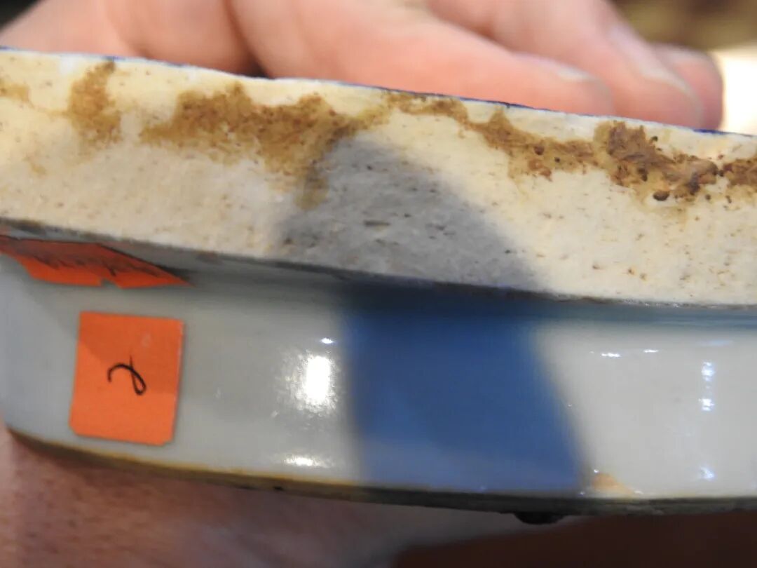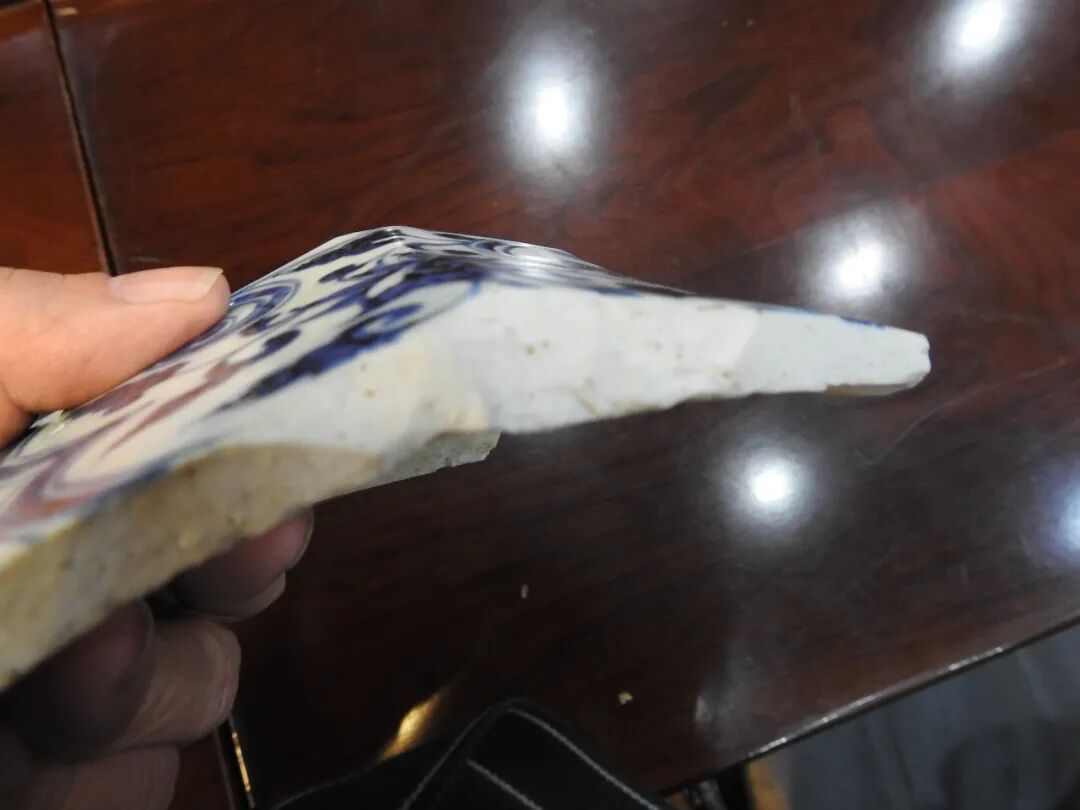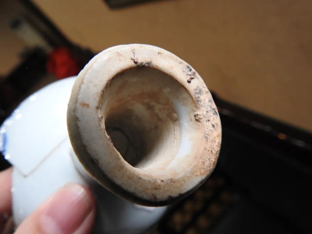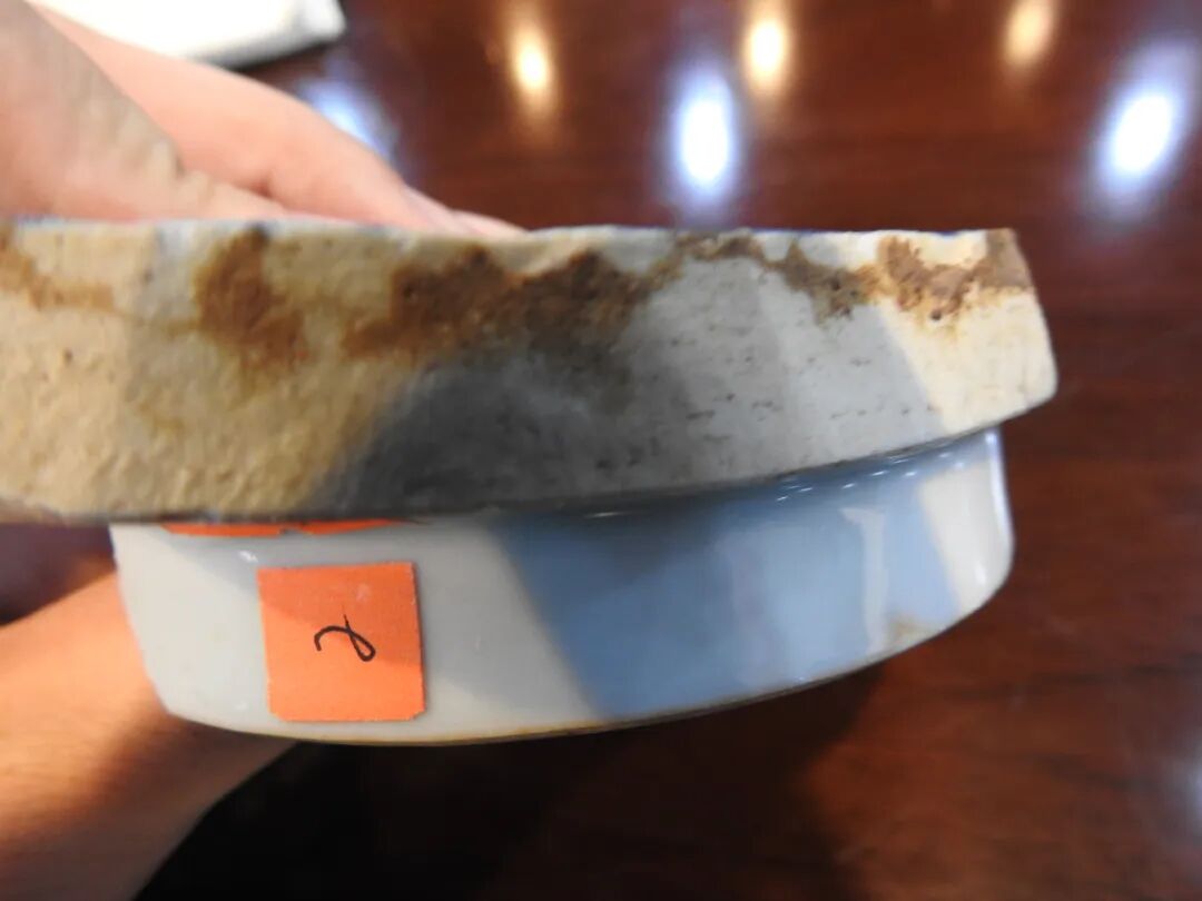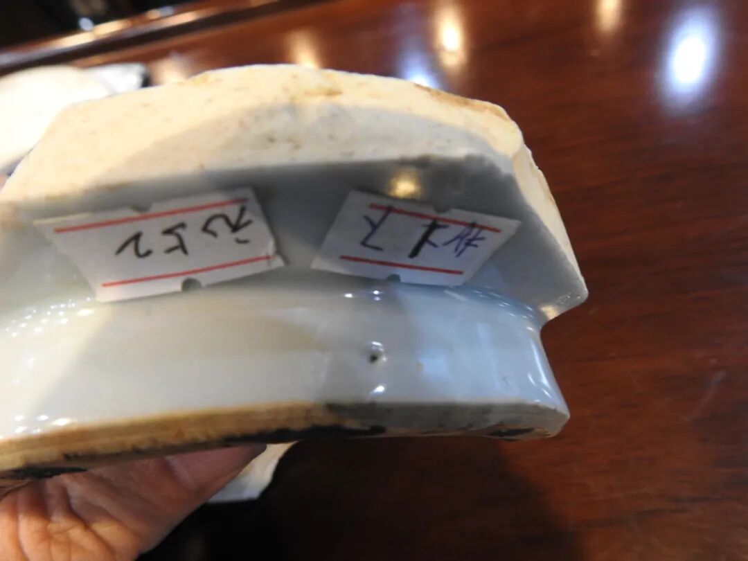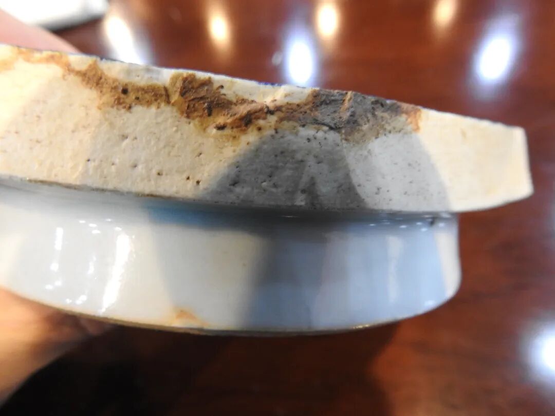 麻仓土的第一特征是有“糖点”。何为糖点?上等土烧制的瓷器洁白如玉。麻仓土由于需要粉粹,器物底有颗粒感,而高岭土为粉末状,颗粒感较弱。元代和明代烧制瓷器的胎土配方是麻仓土加上瓷石的二元混合胎质,其烧制成功后的颜色是一种白胎中微带淡黄色的呈色。其中火石红明显。清代瓷器的胎土配方是高岭土加上瓷石的二元混合胎质,其烧制成功后的颜色是一种纯粹的高白色。。明代、清代这两种胎质烧成后的呈色的不同,也是明清两朝瓷器断代的重要依据之一。