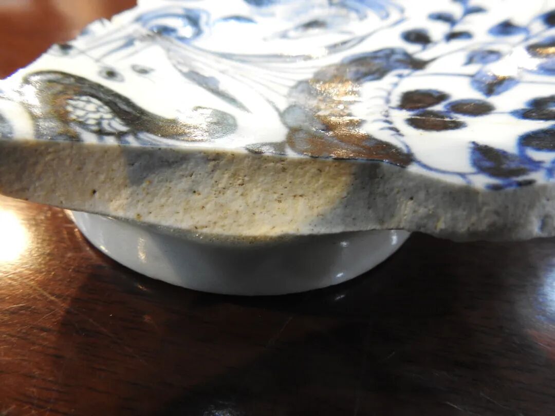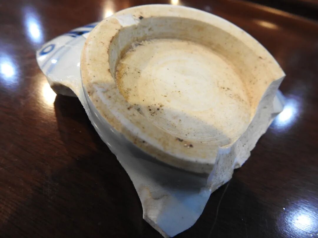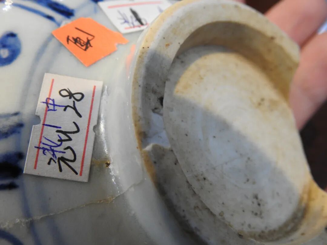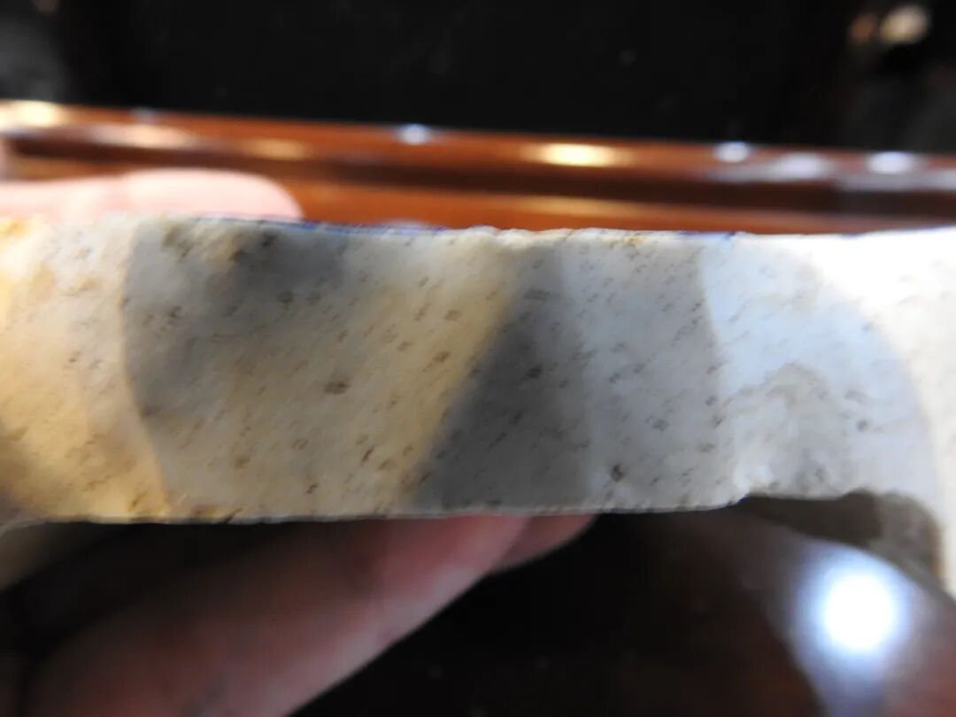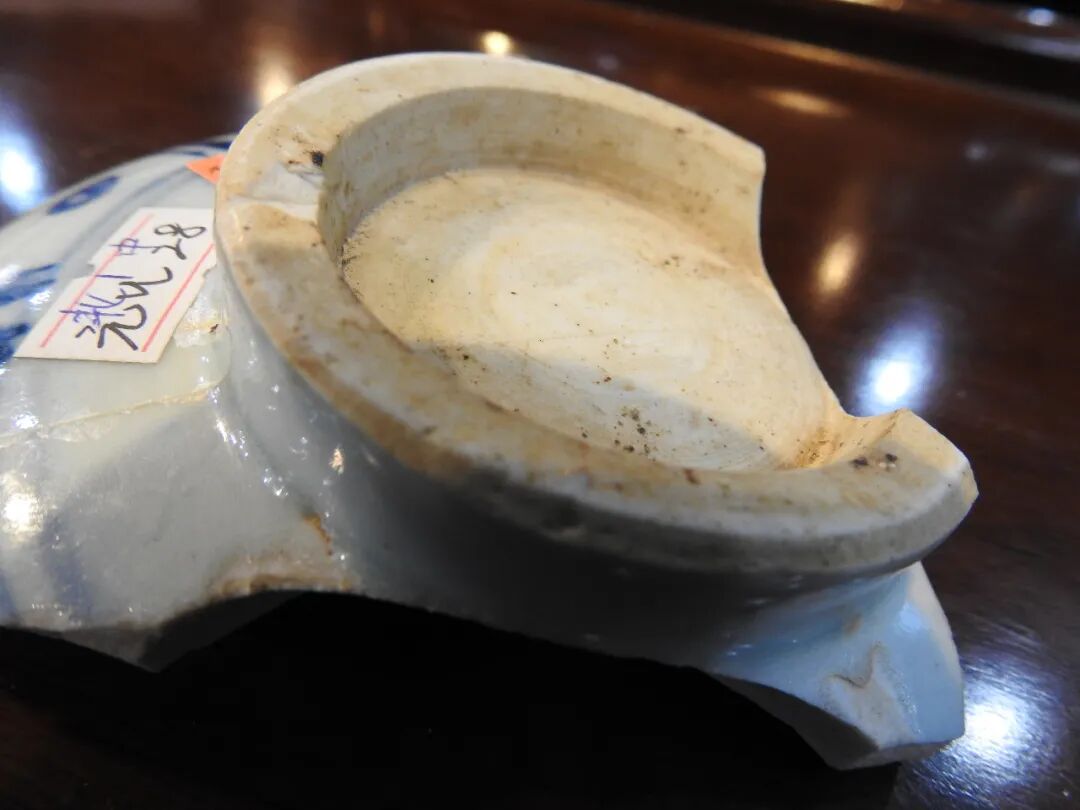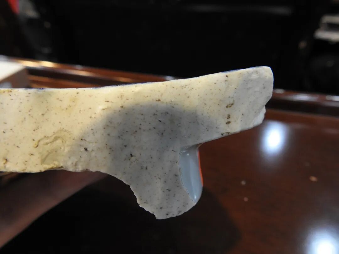 麻仓土的第一特征是有“糖点”。何为糖点?上等土烧制的瓷器洁白如玉。麻仓土由于需要粉粹,器物底有颗粒感,而高岭土为粉末状,颗粒感较弱。元代和明代烧制瓷器的胎土配方是麻仓土加上瓷石的二元混合胎质,其烧制成功后的颜色是一种白胎中微带淡黄色的呈色。其中火石红明显。清代瓷器的胎土配方是高岭土加上瓷石的二元混合胎质,其烧制成功后的颜色是一种纯粹的高白色。。明代、清代这两种胎质烧成后的呈色的不同,也是明清两朝瓷器断代的重要依据之一。