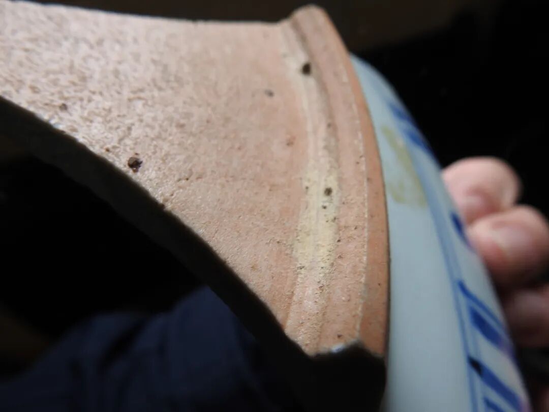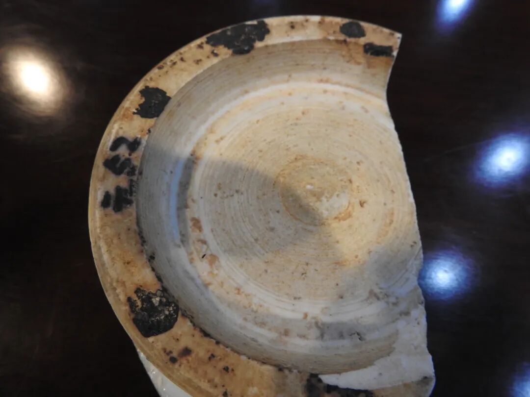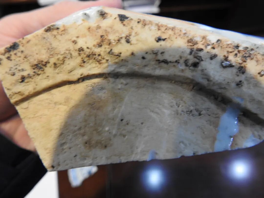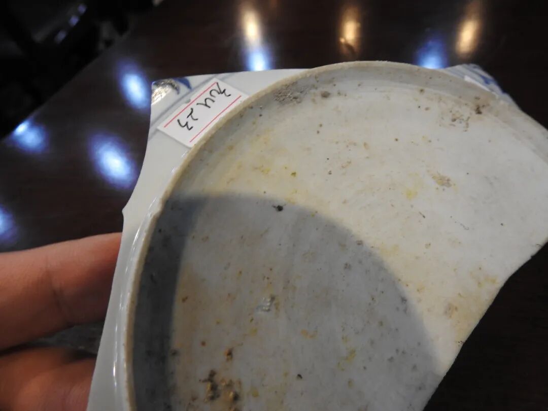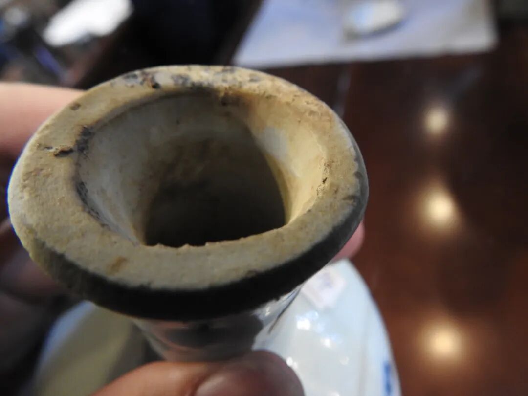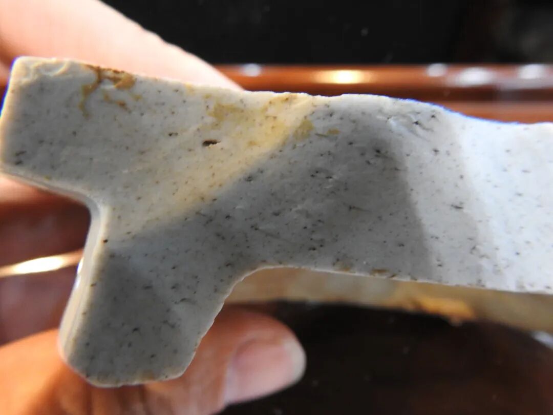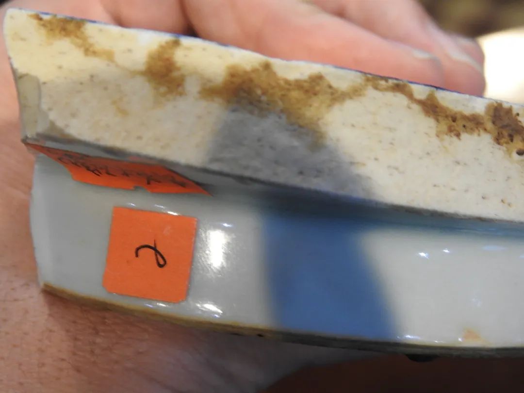 麻仓土的第一特征是有“糖点”。何为糖点?上等土烧制的瓷器洁白如玉。麻仓土由于需要粉粹,器物底有颗粒感,而高岭土为粉末状,颗粒感较弱。元代和明代烧制瓷器的胎土配方是麻仓土加上瓷石的二元混合胎质,其烧制成功后的颜色是一种白胎中微带淡黄色的呈色。其中火石红明显。清代瓷器的胎土配方是高岭土加上瓷石的二元混合胎质,其烧制成功后的颜色是一种纯粹的高白色。。明代、清代这两种胎质烧成后的呈色的不同,也是明清两朝瓷器断代的重要依据之一。
