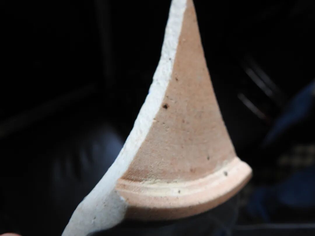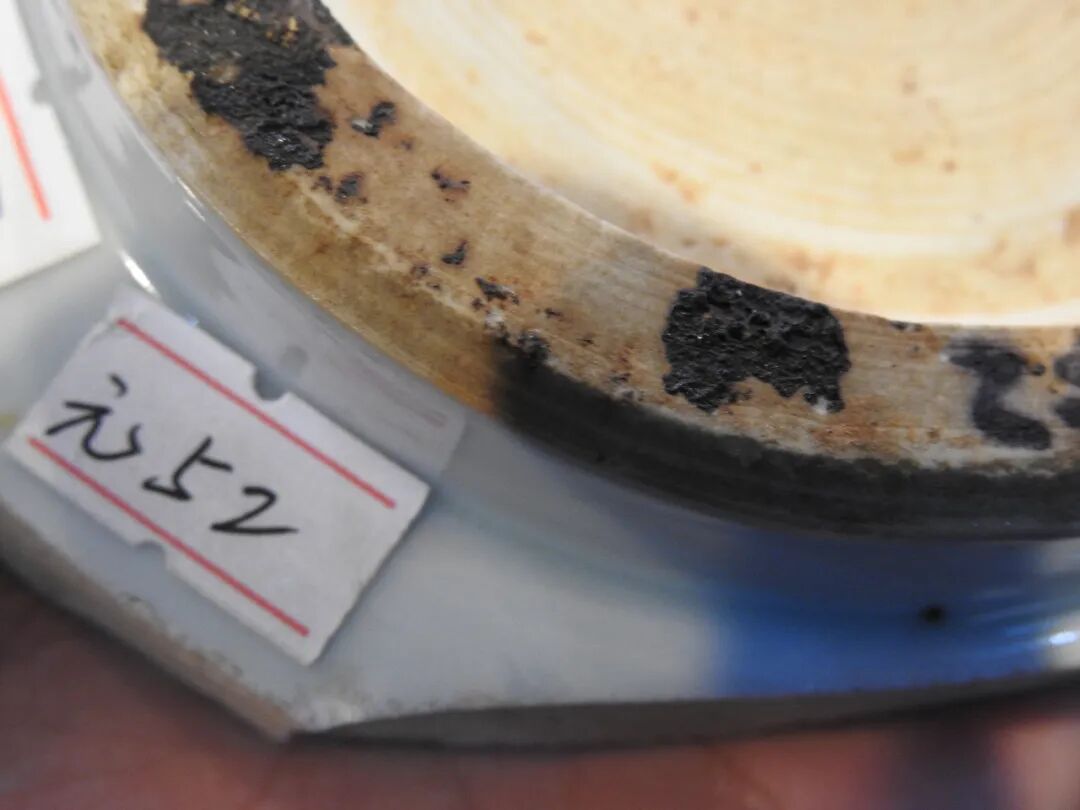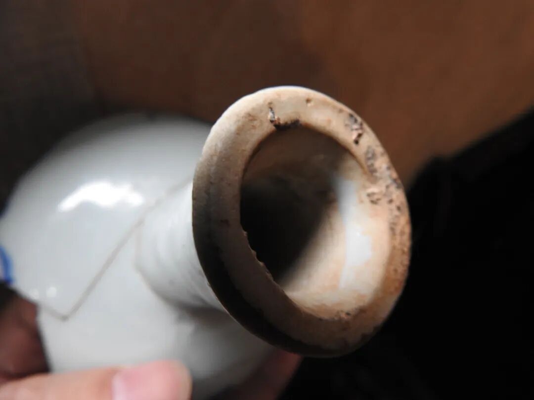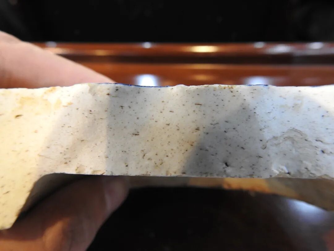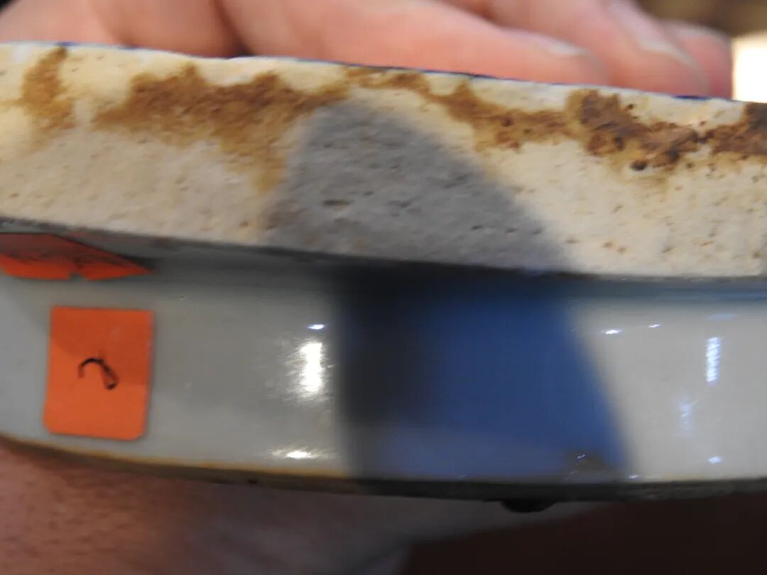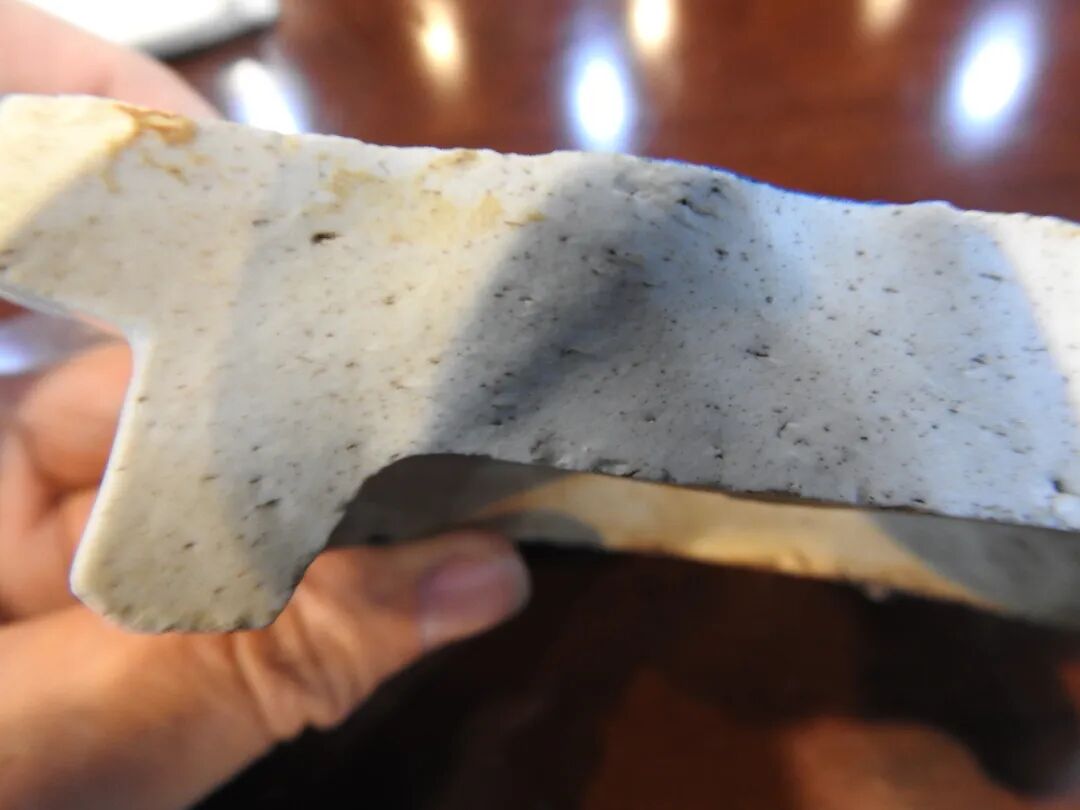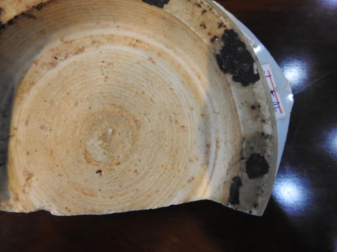 麻仓土的第一特征是有“糖点”。何为糖点?上等土烧制的瓷器洁白如玉。麻仓土由于需要粉粹,器物底有颗粒感,而高岭土为粉末状,颗粒感较弱。元代和明代烧制瓷器的胎土配方是麻仓土加上瓷石的二元混合胎质,其烧制成功后的颜色是一种白胎中微带淡黄色的呈色。其中火石红明显。清代瓷器的胎土配方是高岭土加上瓷石的二元混合胎质,其烧制成功后的颜色是一种纯粹的高白色。。明代、清代这两种胎质烧成后的呈色的不同,也是明清两朝瓷器断代的重要依据之一。