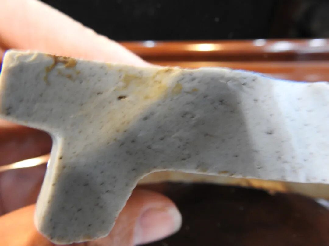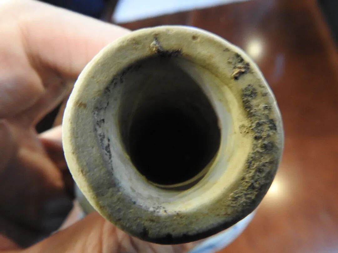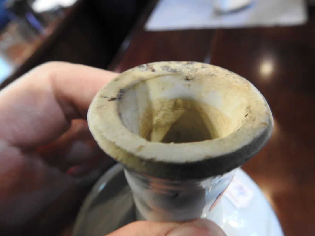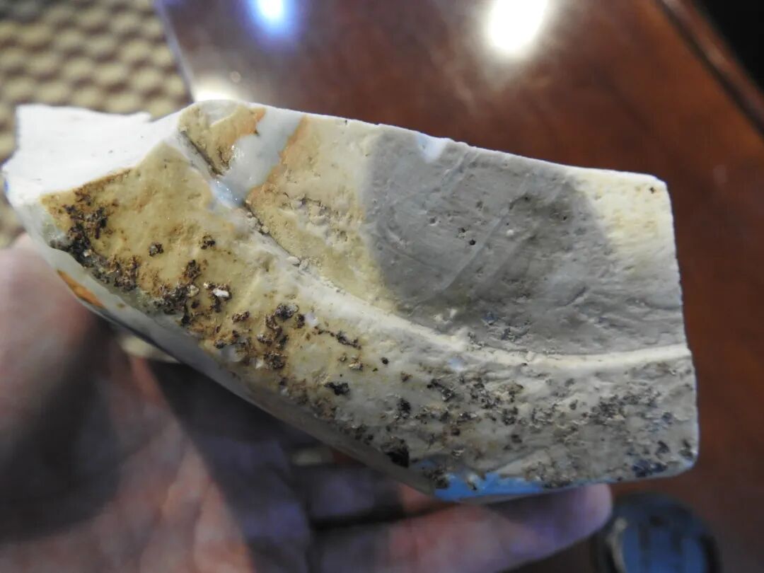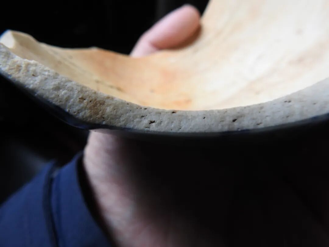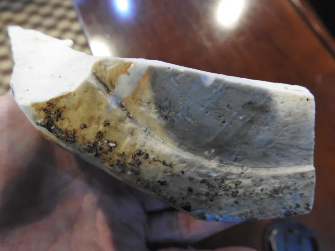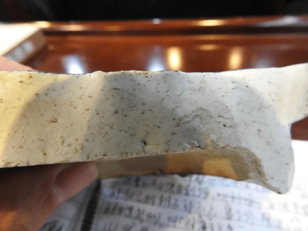 麻仓土的第一特征是有“糖点”。何为糖点?上等土烧制的瓷器洁白如玉。麻仓土由于需要粉粹,器物底有颗粒感,而高岭土为粉末状,颗粒感较弱。元代和明代烧制瓷器的胎土配方是麻仓土加上瓷石的二元混合胎质,其烧制成功后的颜色是一种白胎中微带淡黄色的呈色。其中火石红明显。清代瓷器的胎土配方是高岭土加上瓷石的二元混合胎质,其烧制成功后的颜色是一种纯粹的高白色。。明代、清代这两种胎质烧成后的呈色的不同,也是明清两朝瓷器断代的重要依据之一。