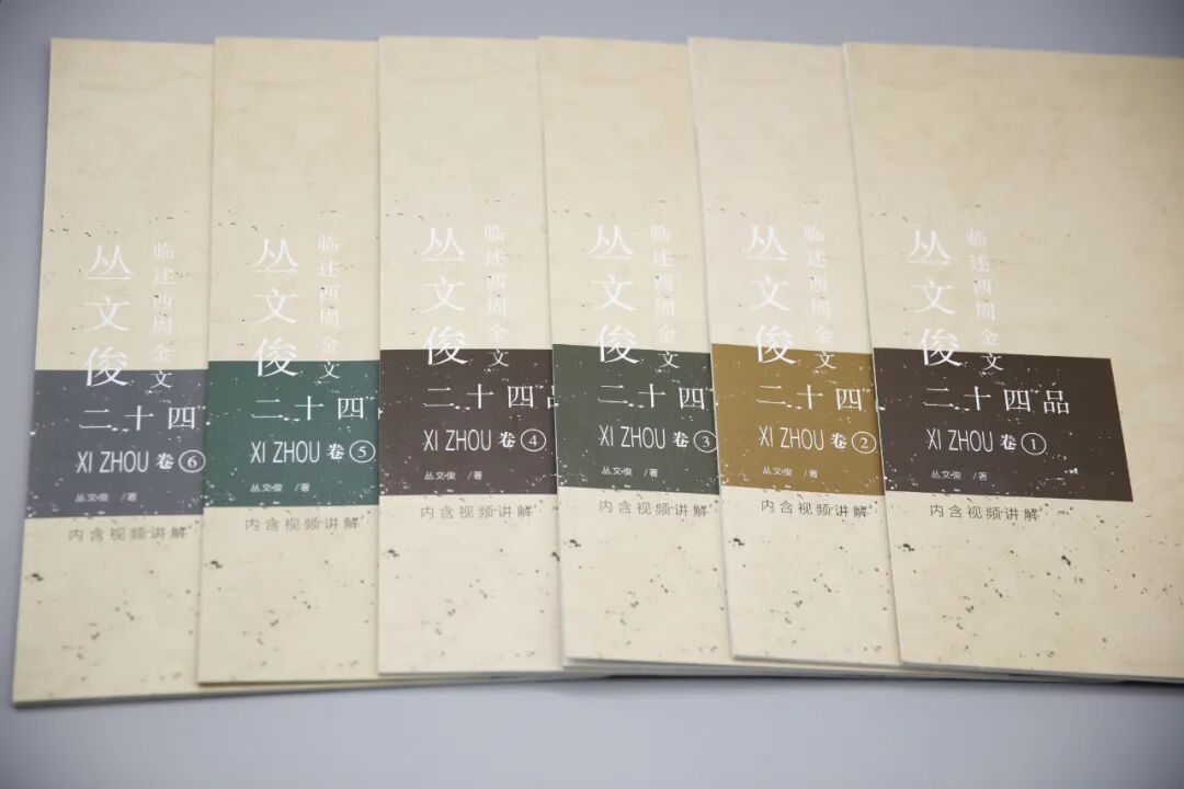 《周道荡荡——丛文俊临述西周金文二十四品》分为6个分册,每个分册临述4种金文,精选、精临金文共24种。这套丛书对原器的历史背景、拓本的版本选择都进行了详细的介绍和分析,对金文书法临写的关键要点分别有详尽的文字和视频解说,对部分重点器物金文的原拓和临本放大细节比照。“穷研篆籀,功省而易成。”这部集作者几十年金文研究的呕心之作,是读者研究和临习金文书法的案头必备。