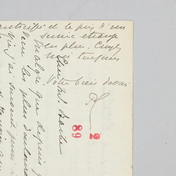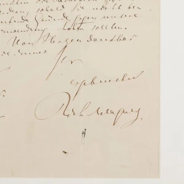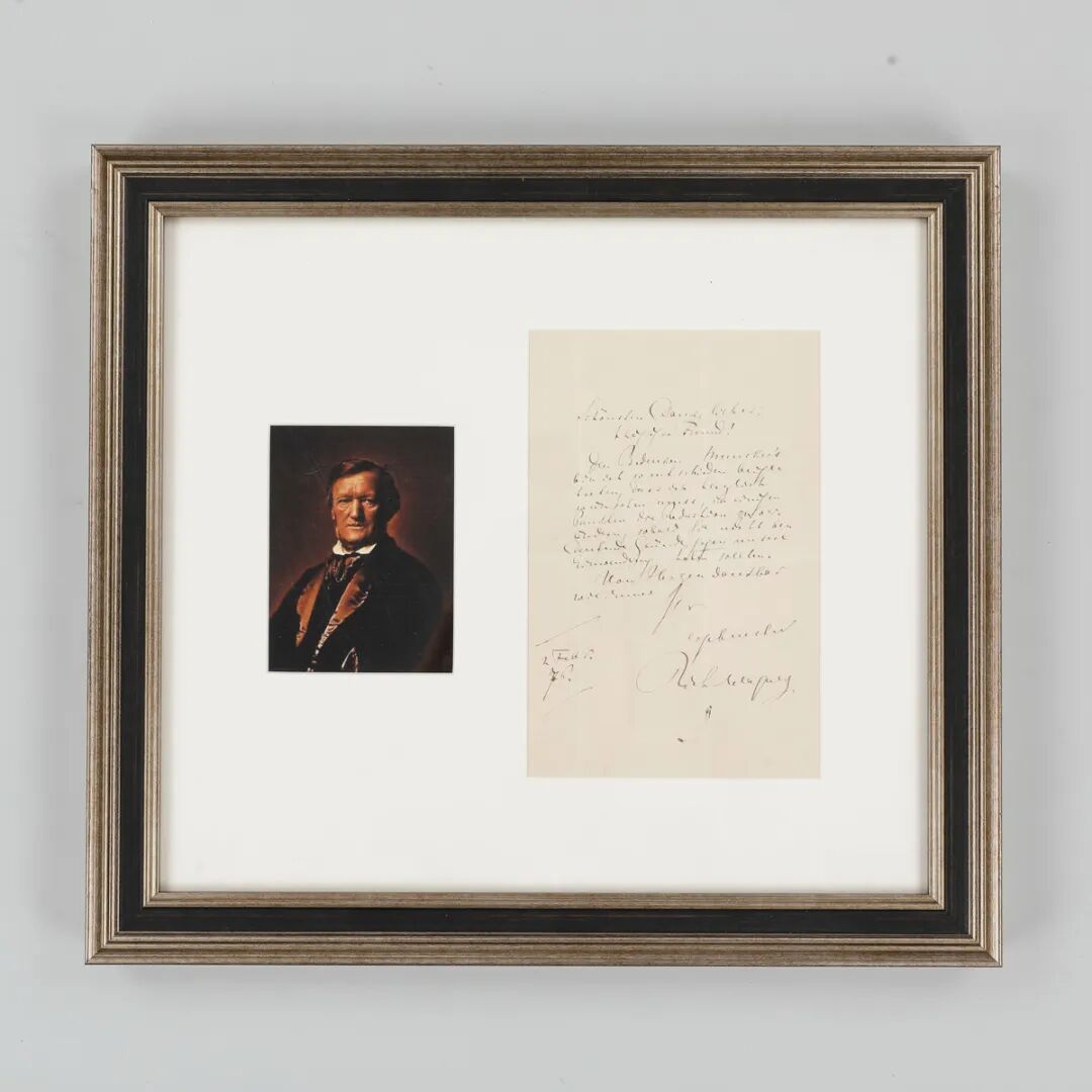 RMB:28,000-40,000说明:此为瓦格纳晚年论举行首届拜罗伊特音乐节和为音乐节特别改编其著名四联歌剧《尼伯龙根的指环》的信札。通篇德语,署有本款“理查德 · 瓦格纳(Richard Wagner)”。作曲家在信中写道“……现在我已经果断地和蒙克站在一起,对此事甚表担忧。若您尚提不出什么重大的反对意见的话,我由衷的希望能对曲谱(指《尼伯龙根的指环》)进行一些适当的改编”。