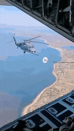 空中进行加油任务的直升飞机,似乎每一步都很小心翼翼。