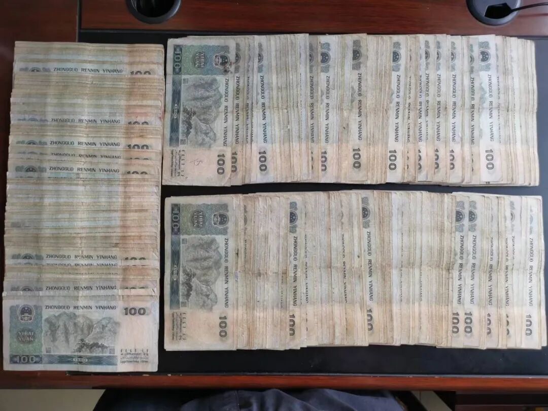 像下图这种四角磨圆、边缘发黑、有明显折痕、裂口,票面发黄的旧钞,能卖230多元一张。