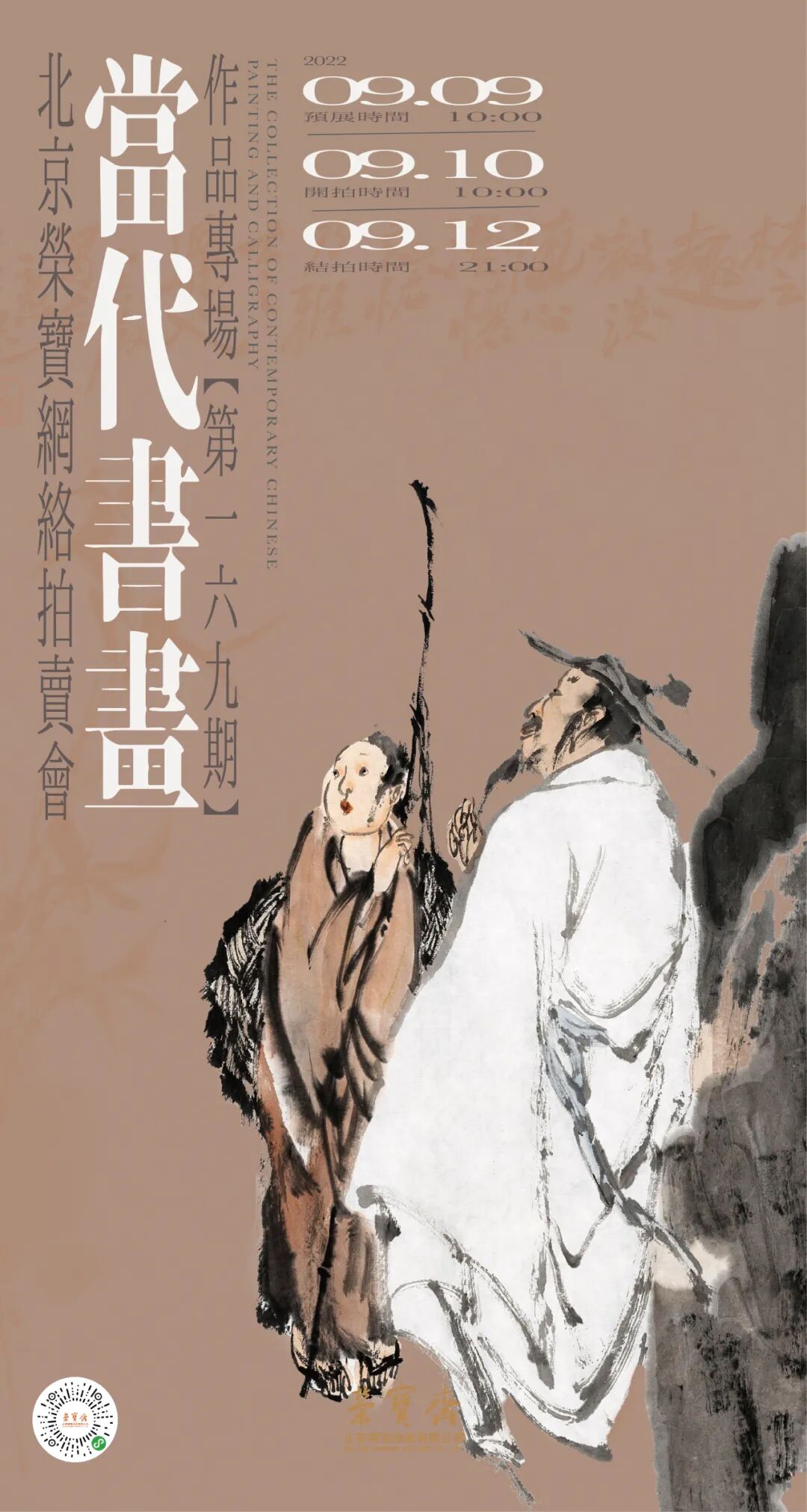 北京荣宝·当代书画作品专场网络拍卖会(第一六九期)将于9月9日10:00—9月10日10:00开启线上预展,并于9月10日10:00开拍,9月12日21:00结拍。