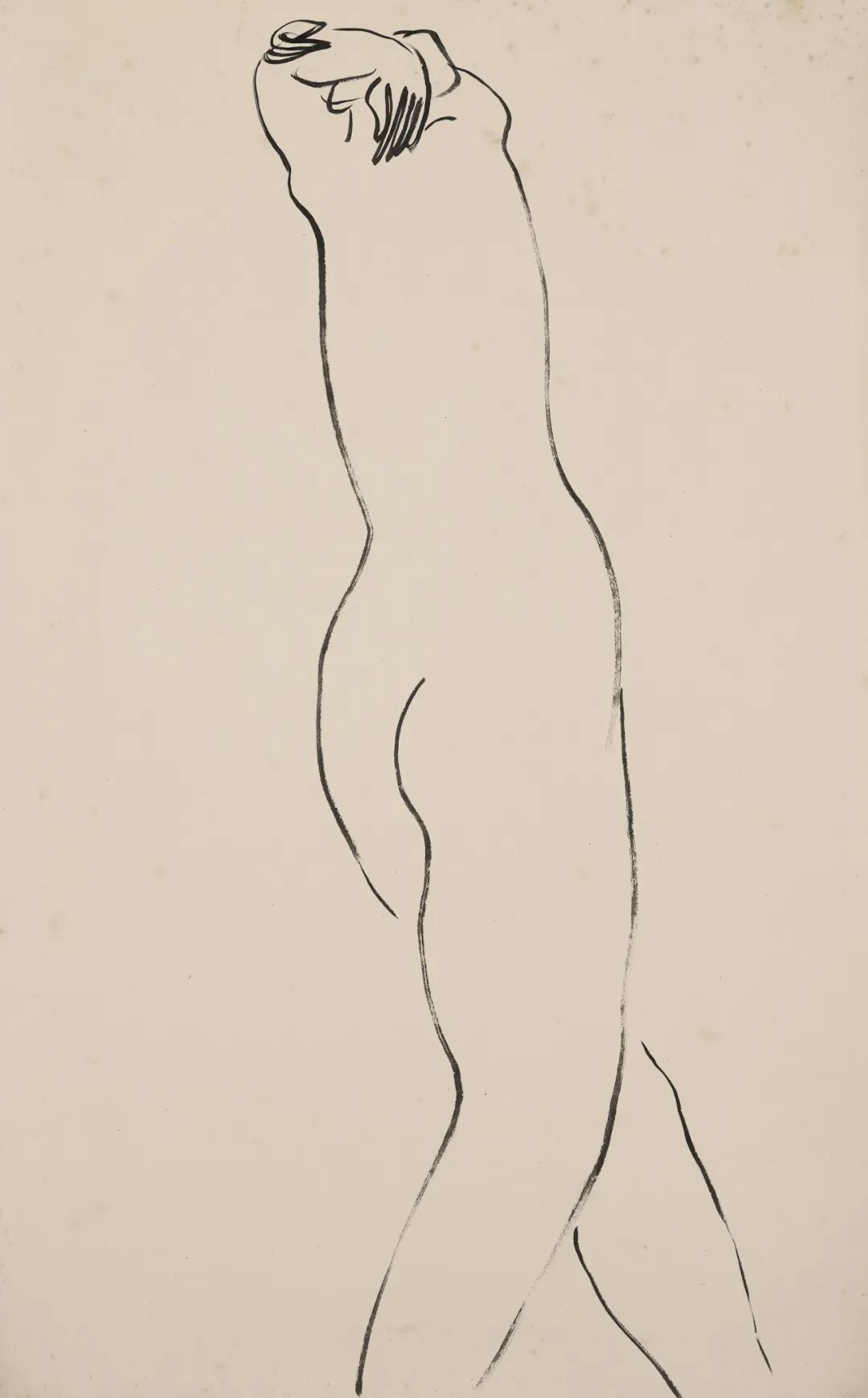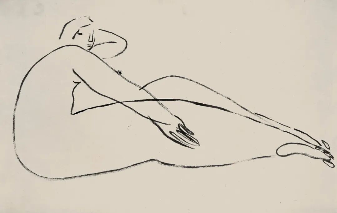 常玉以毛笔作画的裸女最是动人。画中女子以极为精鍊的线条展现躯体,仿若浑然天成,自成韵律,因毛笔而生的干渴浓淡,跟随艺术家腕力的轻重缓急,在纸上形成自然律动的曲线。是次两件水墨作品以一横一竖的形态展现人体之美的多维姿态。