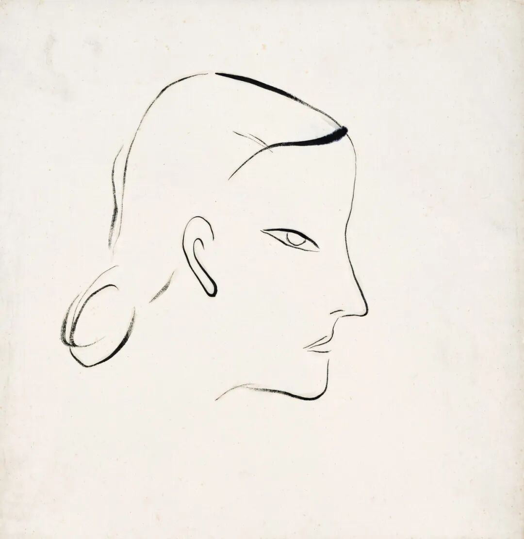 常玉曾言:「形式上我追求简化,直至最核心的本质……精准的力量才能更加丰沛无限。」印证其所言,《侧脸女子像》(拍品编号64)便以最为扼要的线条,展现最为精准的结构把控力。此作中,女子的侧脸五官如同写就一结构方正的书法汉字,单笔提顿分明,线条与线条间则见起承转合之势,以重笔落下,自额端利落拉出发丝,再以淡墨营造脸部的绵延,塑造出立体的起伏感,眼耳处则不作过多着墨,而是呈现整体的和谐呼应,柔中见刚的用笔,将娴雅知性的人物神髓运应而生。