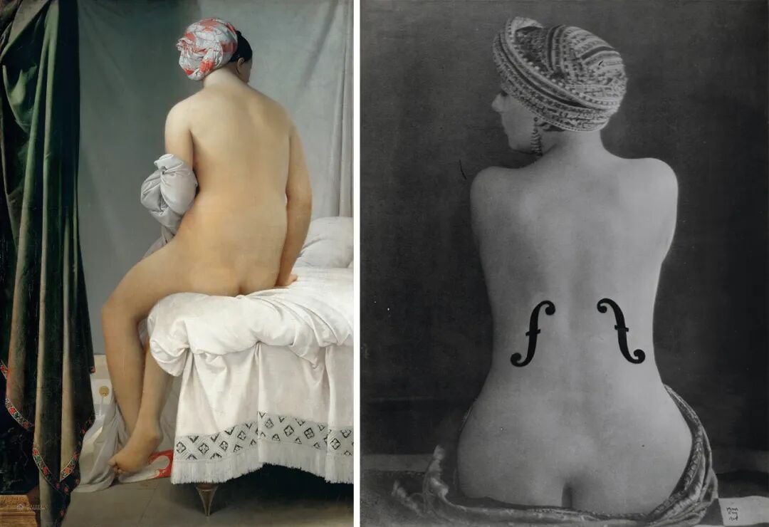 左:安格尔《瓦平松的浴女》,油彩画布,146×97.5cm,1808年作,巴黎卢浮宫藏
