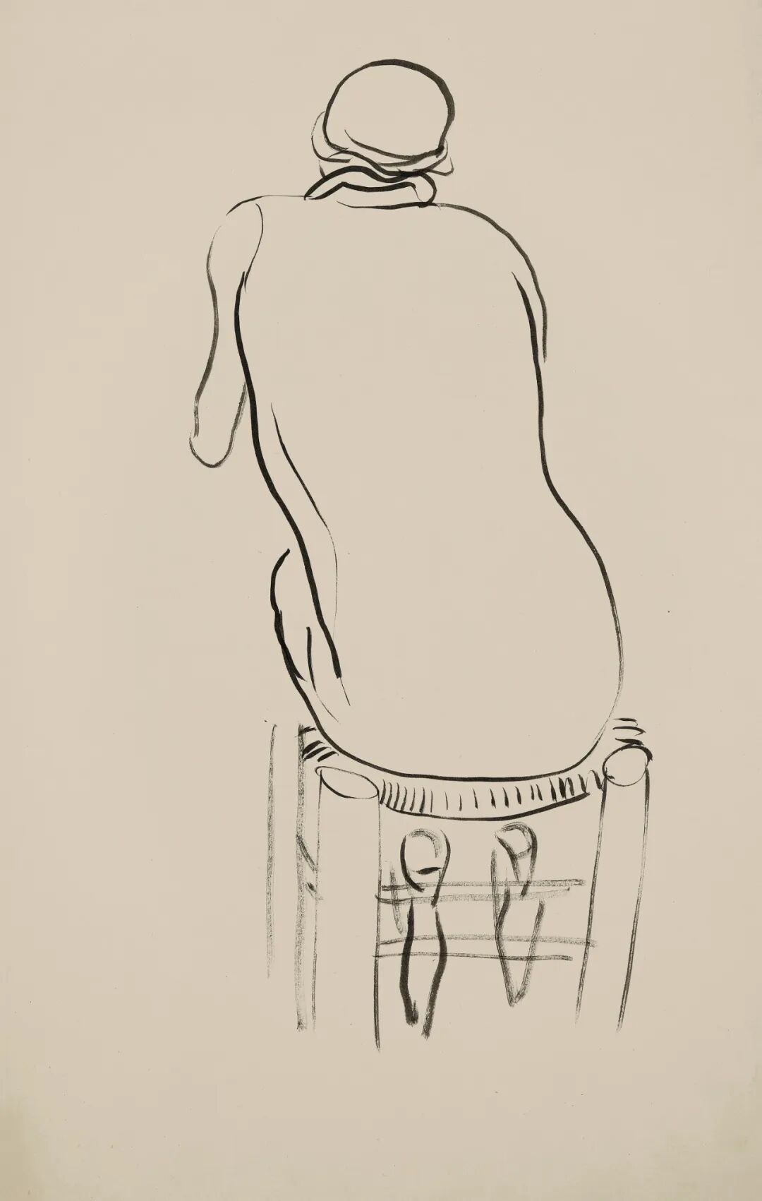 而正因常玉如此般追寻着完美线条的呈现,他更将创作提炼为对美的生动联想。《背影女子坐像》(拍品编号67)仿若诞生自艺术家的惊鸿一瞥,女子如玉般的背影便牢牢嵌入脑海中,久久不能忘怀。画中人侧坐的背影,令人联想起安格尔《瓦平松的浴女》中的东方女性。