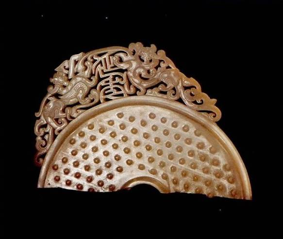 玉璧:汉代玉璧数量最多,形态各异,寓意丰富,功能多样,有祭祀用玉、象征身份的瑞玉、建筑装饰用玉、人体装饰用玉、丧葬用玉,或用于丧车、棺饰、殓尸等。