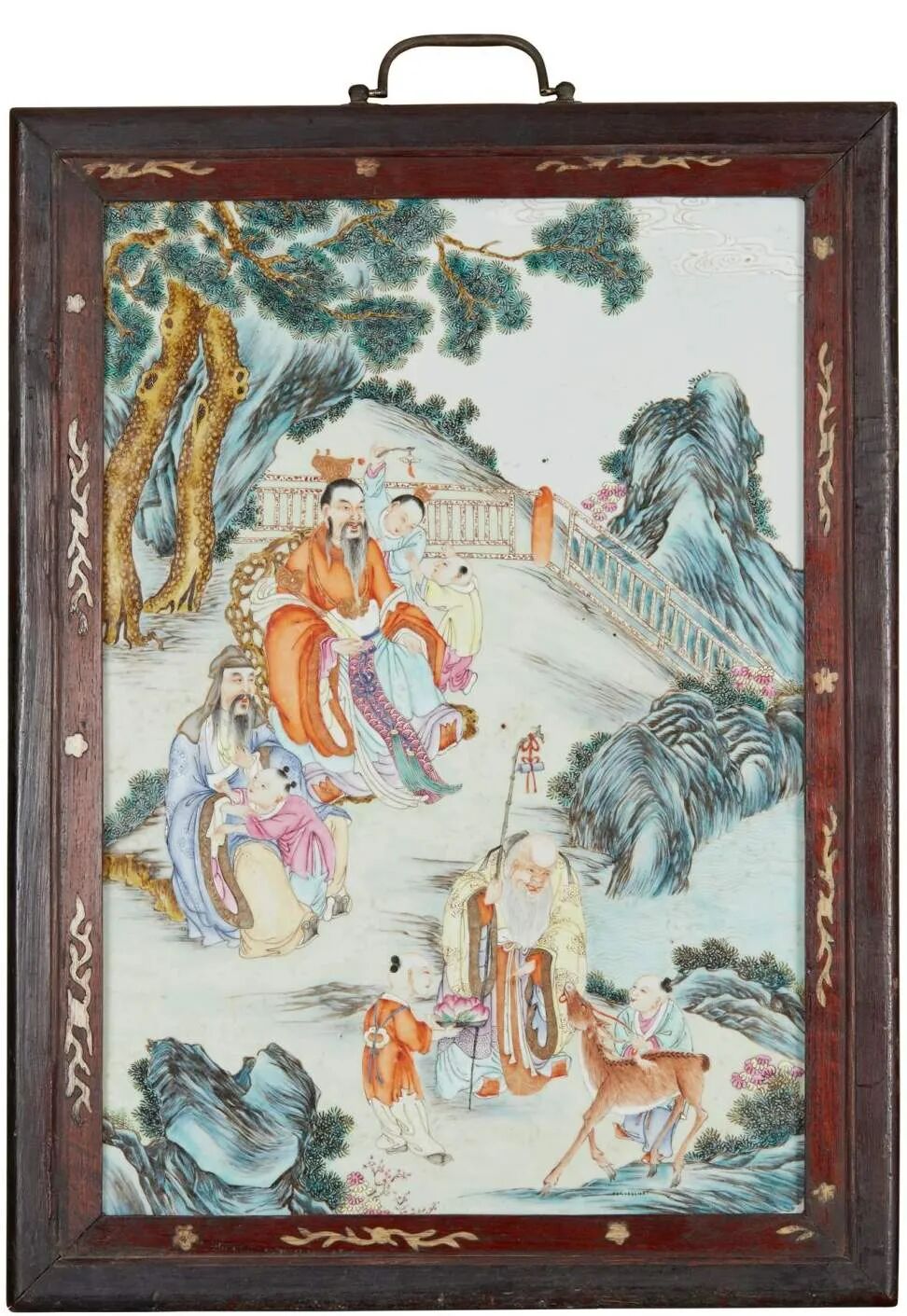 清粉彩三星图瓷板