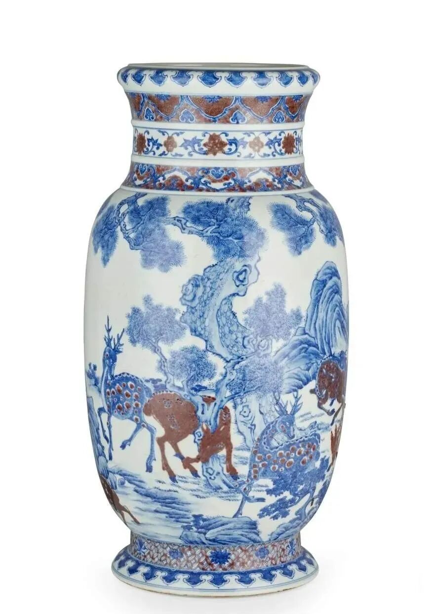 乾隆款青花釉里红百鹿图灯笼瓶