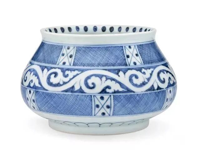 宣德瓷造型凝重浑厚;胎质细腻,多细砂底,少见琢器接痕;釉面一般都能见到橘皮纹。